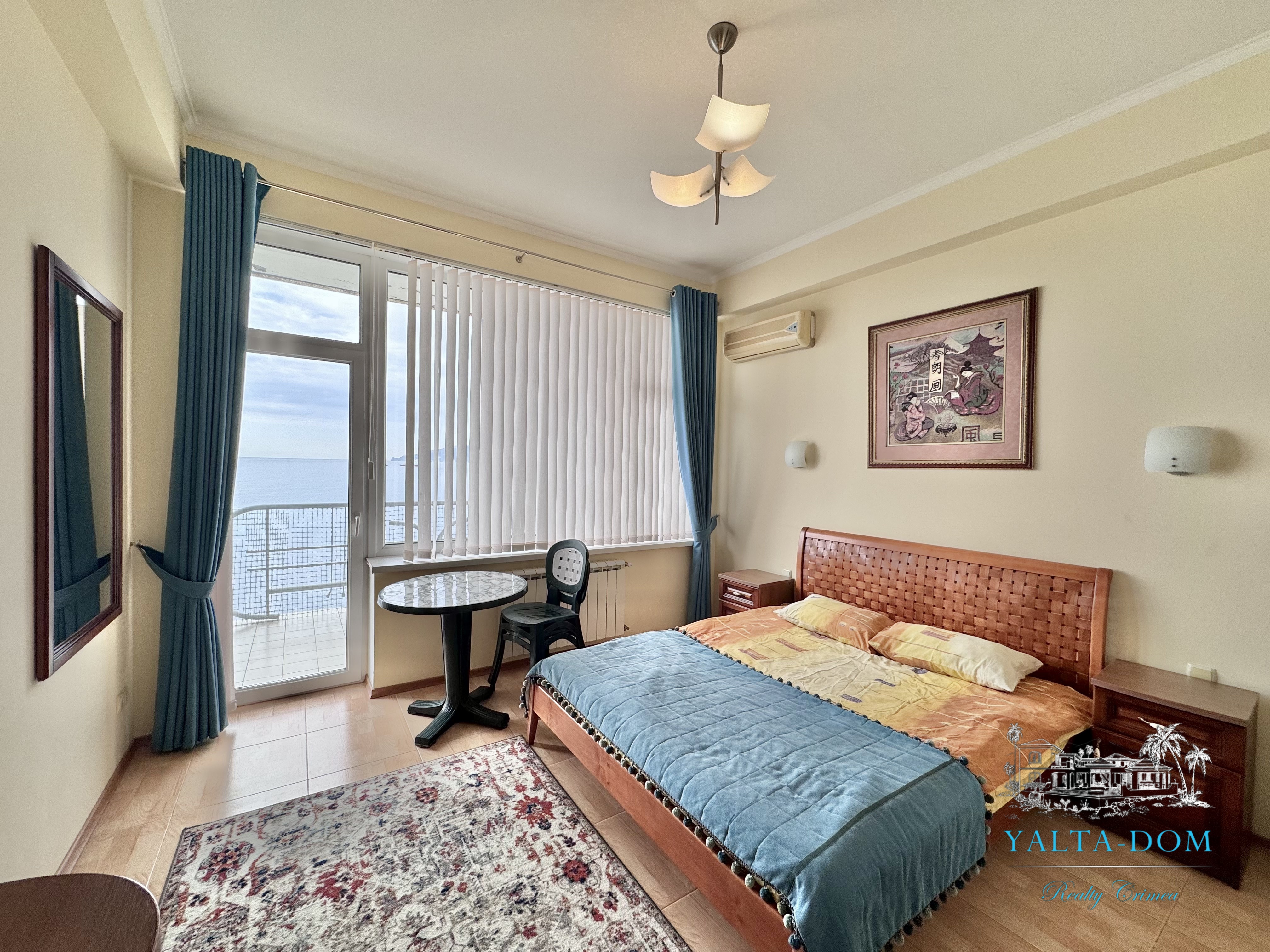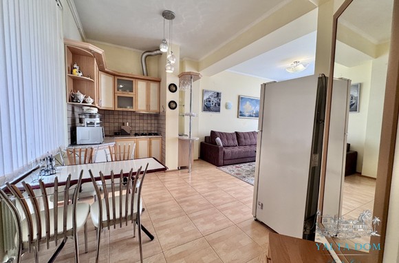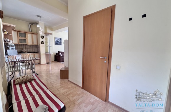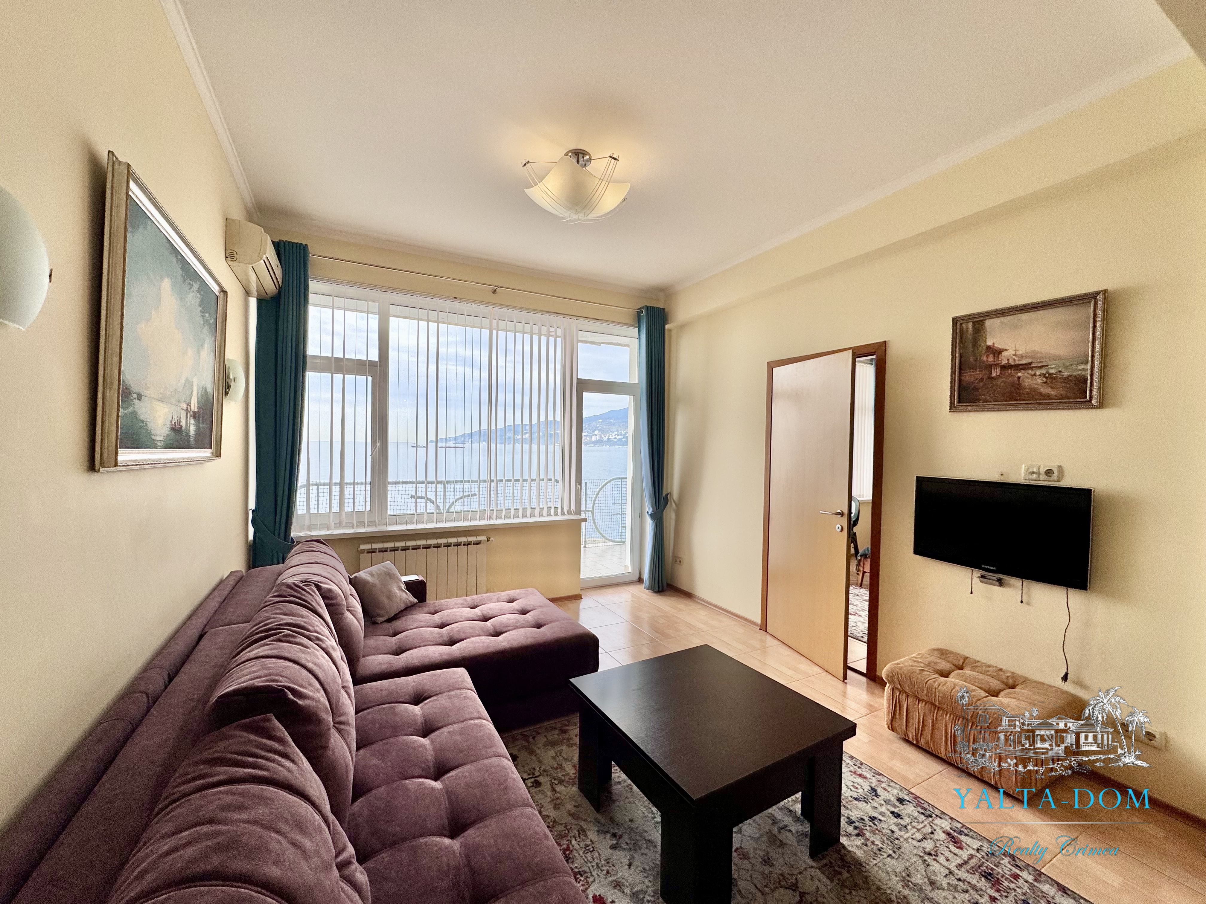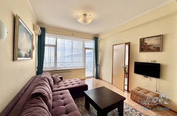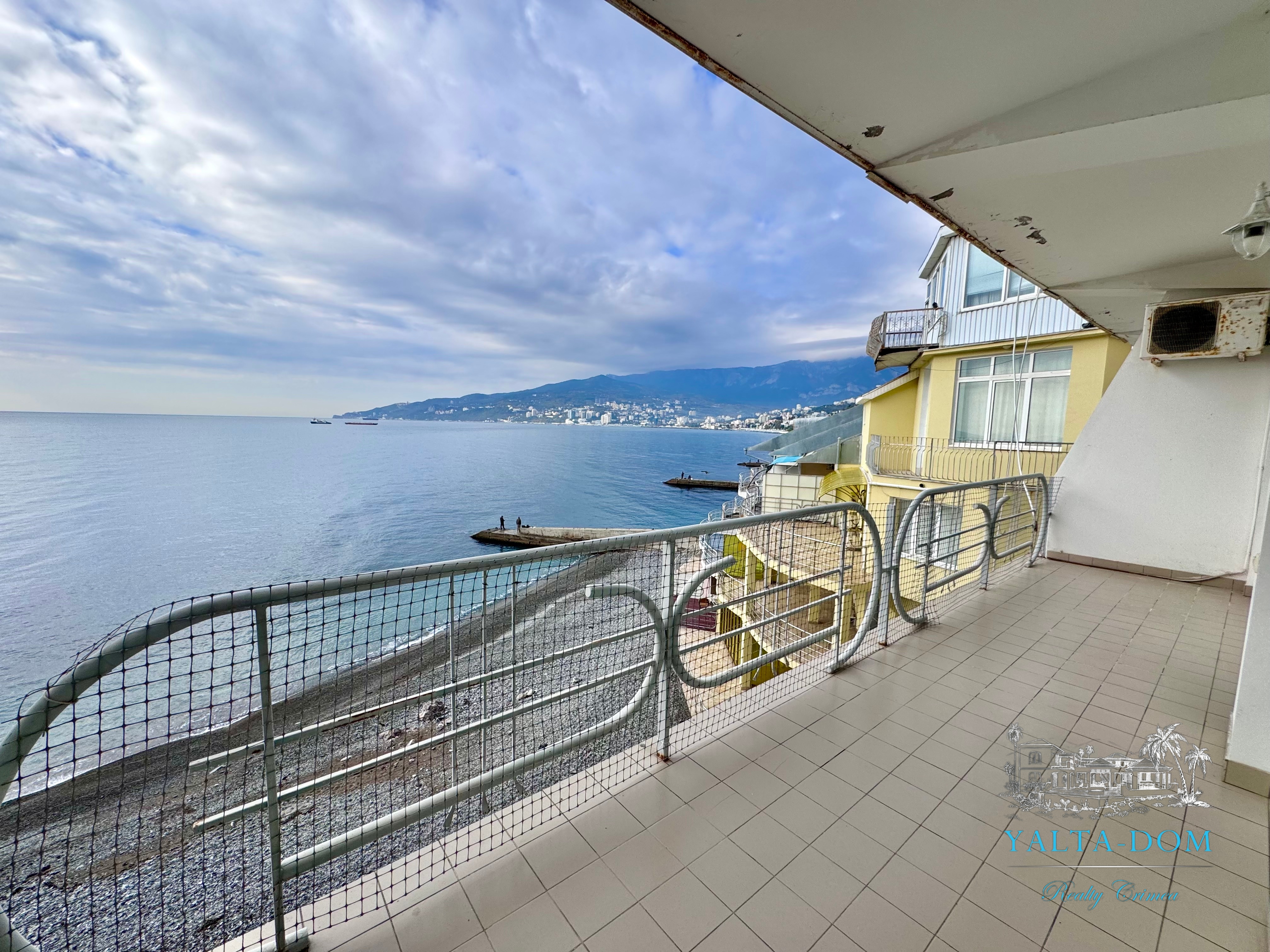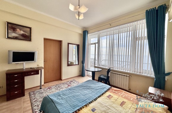 Апартамент на берегу моря, первая линия, третий этаж. Общая площадь 52,4 квадратных метра. Видовая терраса. Полностью укомплектован бытовой техникой. Спальня с двуспальной кроватью, кухня, гостиная с двуспальным диваном и выходом на террасу с видом на море.