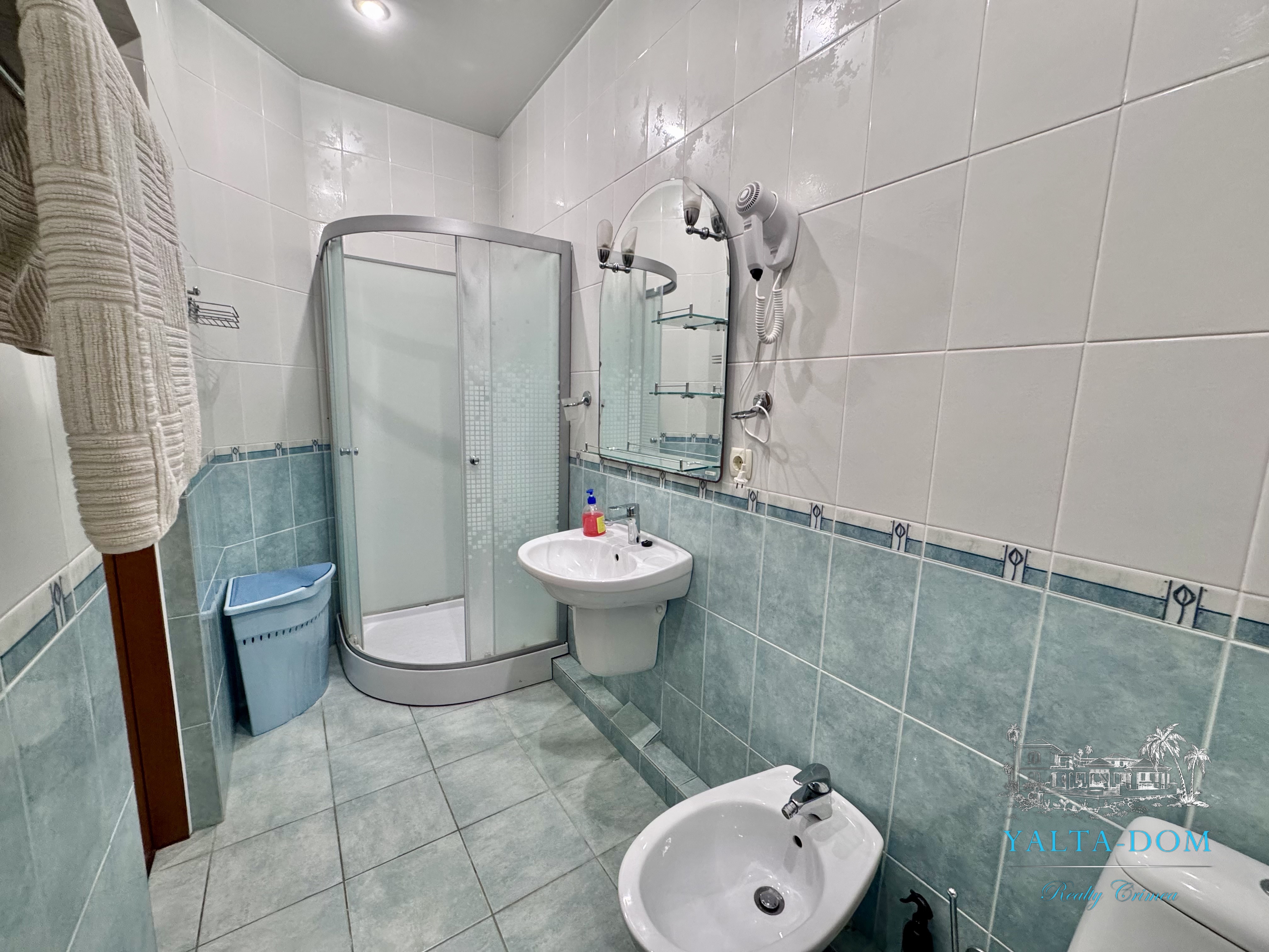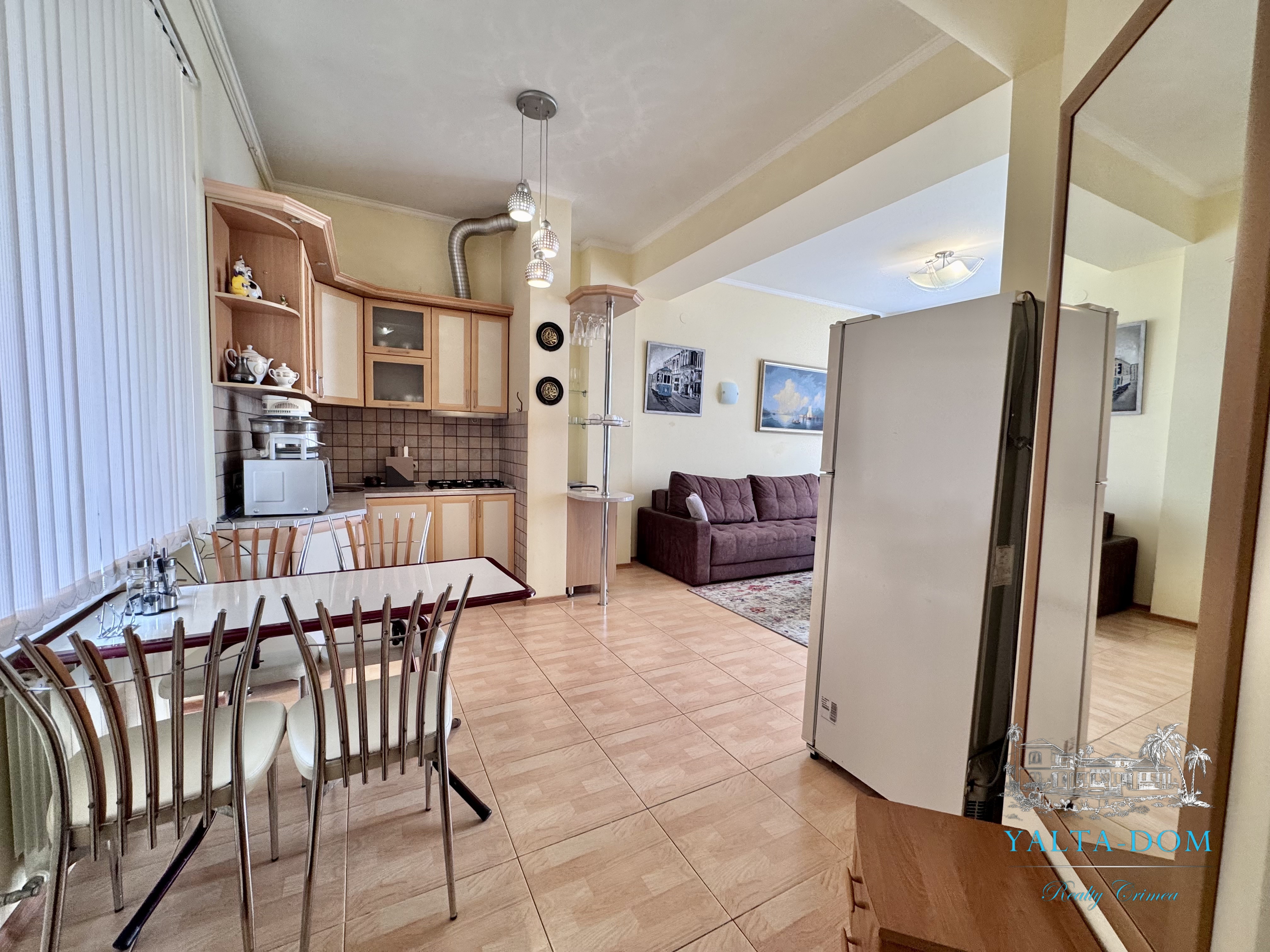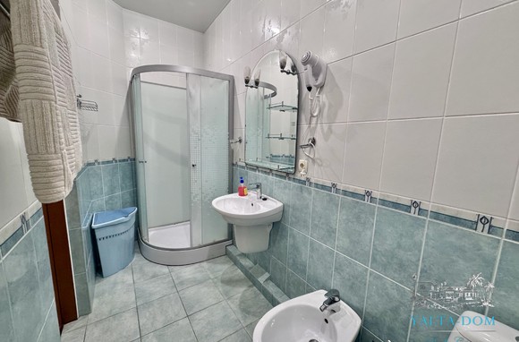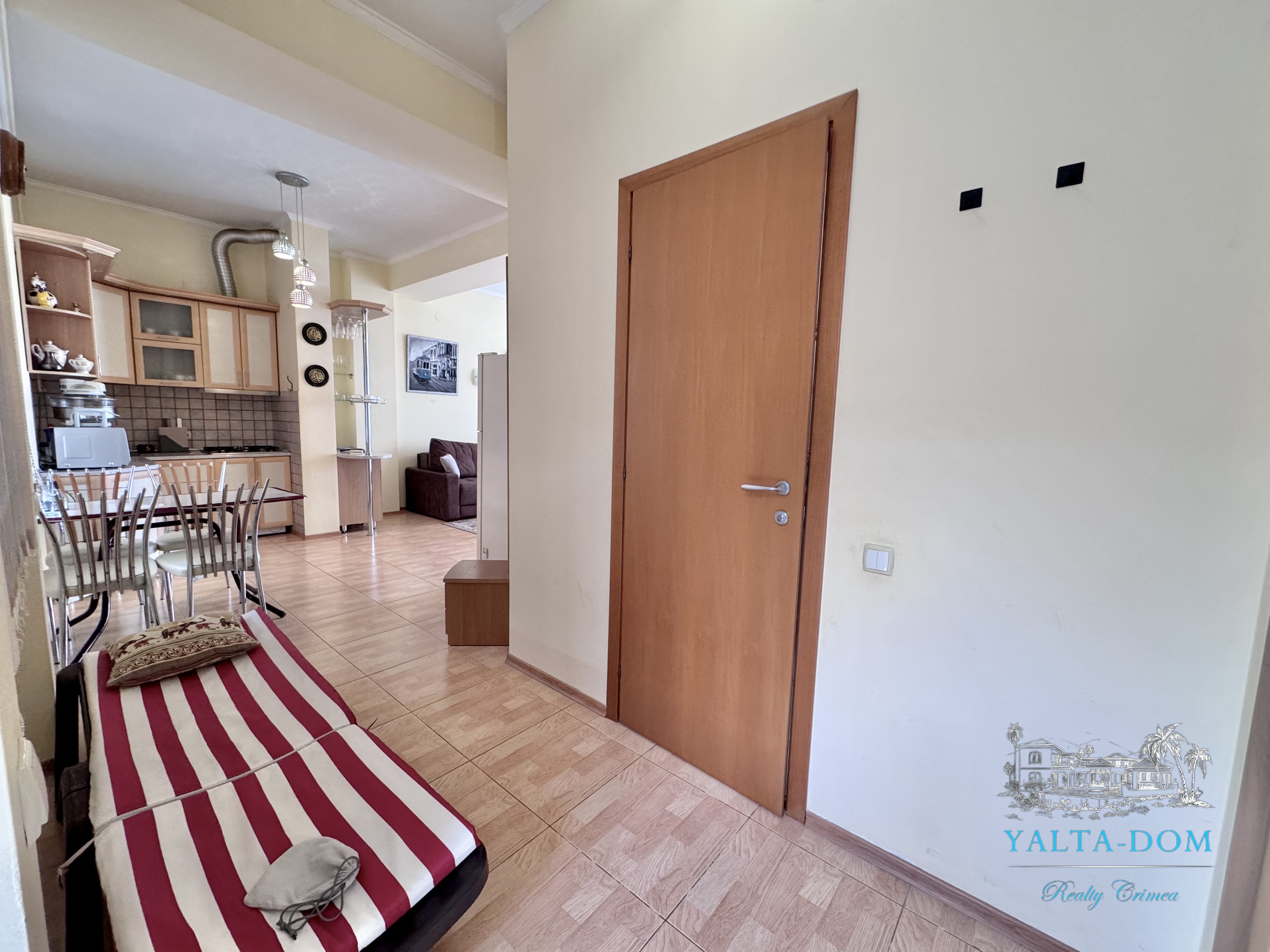 Апартамент на берегу моря, первая линия, третий этаж. Общая площадь 52,4 квадратных метра. Видовая терраса. Полностью укомплектован бытовой техникой. Спальня с двуспальной кроватью, кухня, гостиная с двуспальным диваном и выходом на террасу с видом на море.