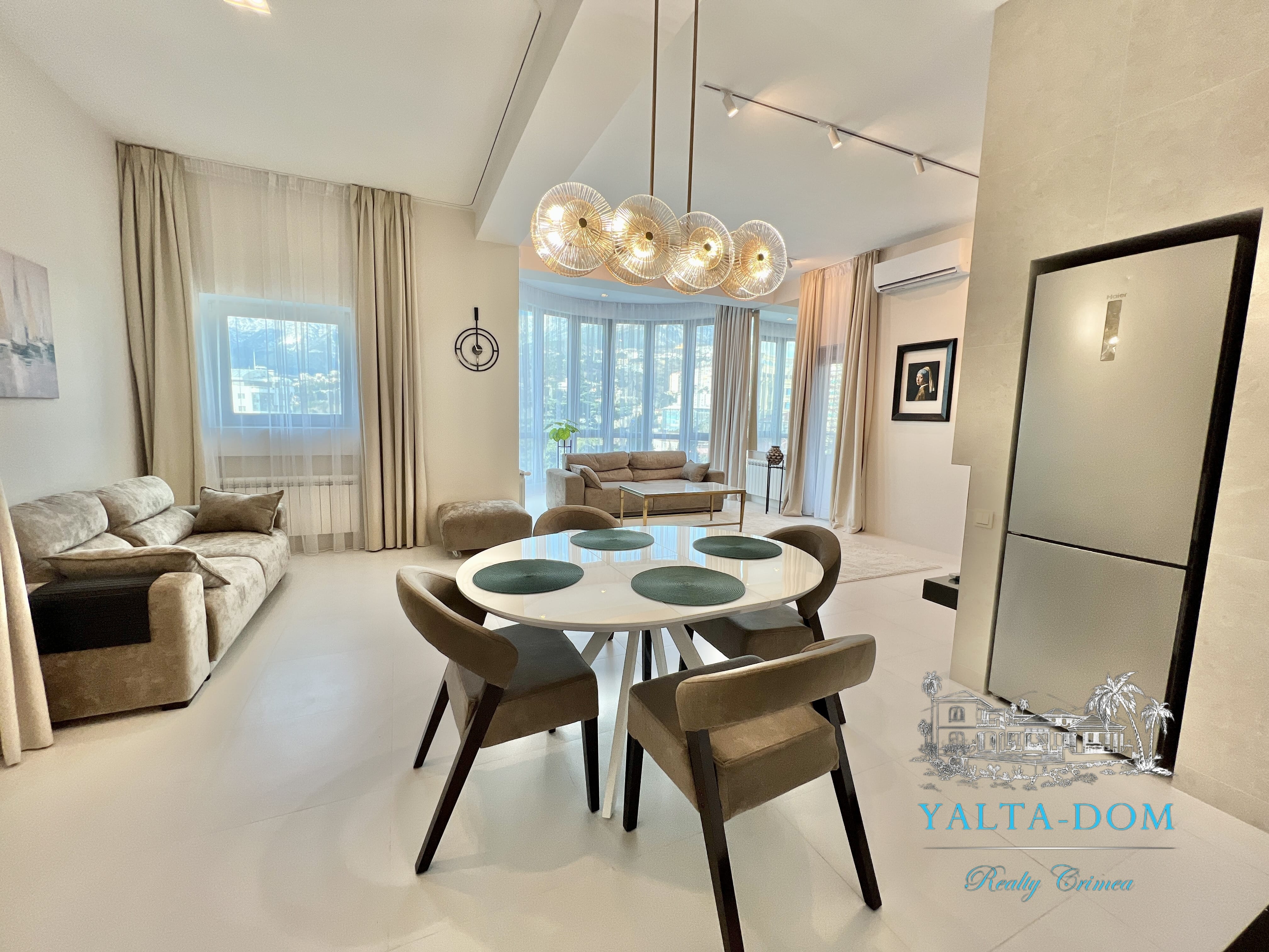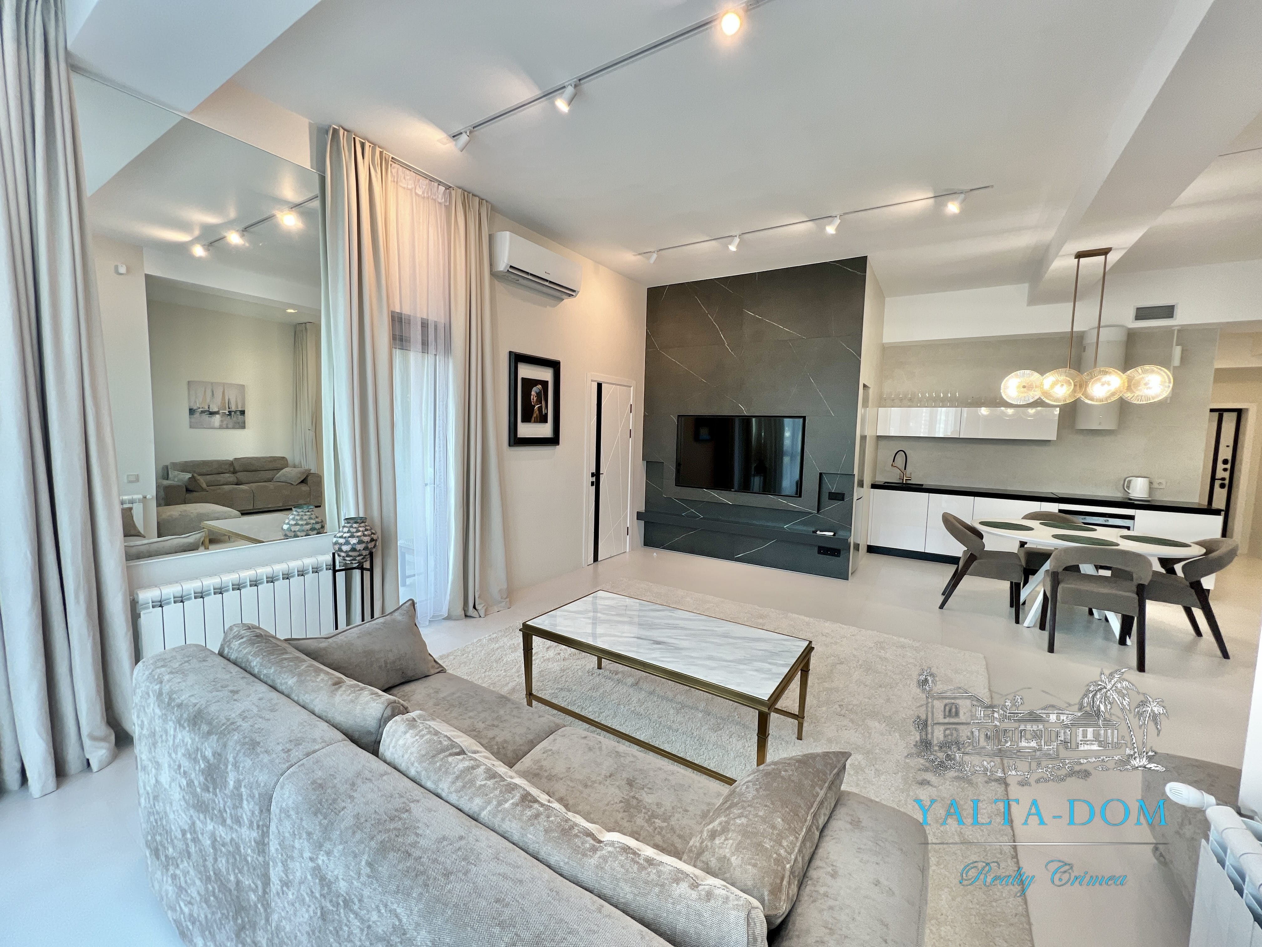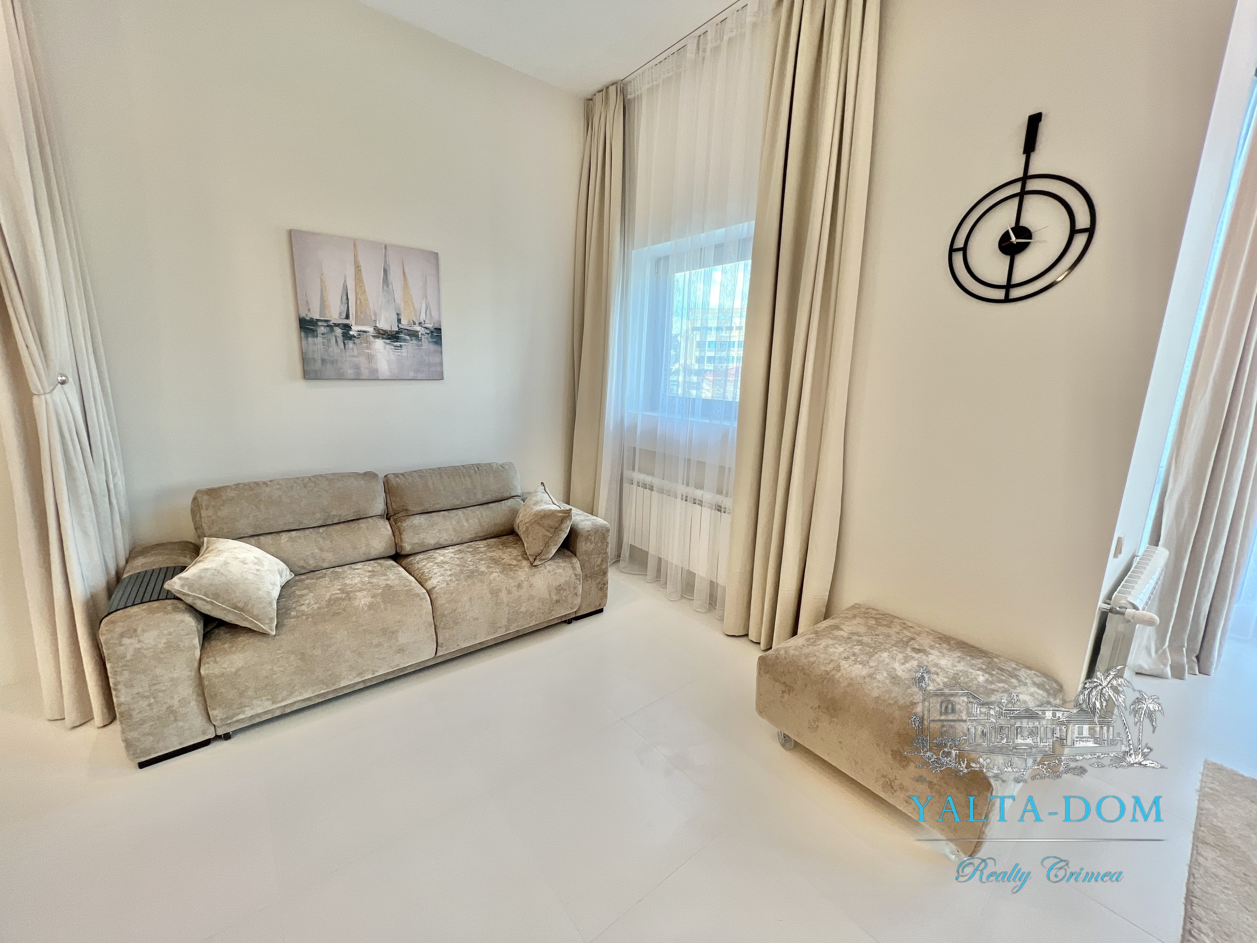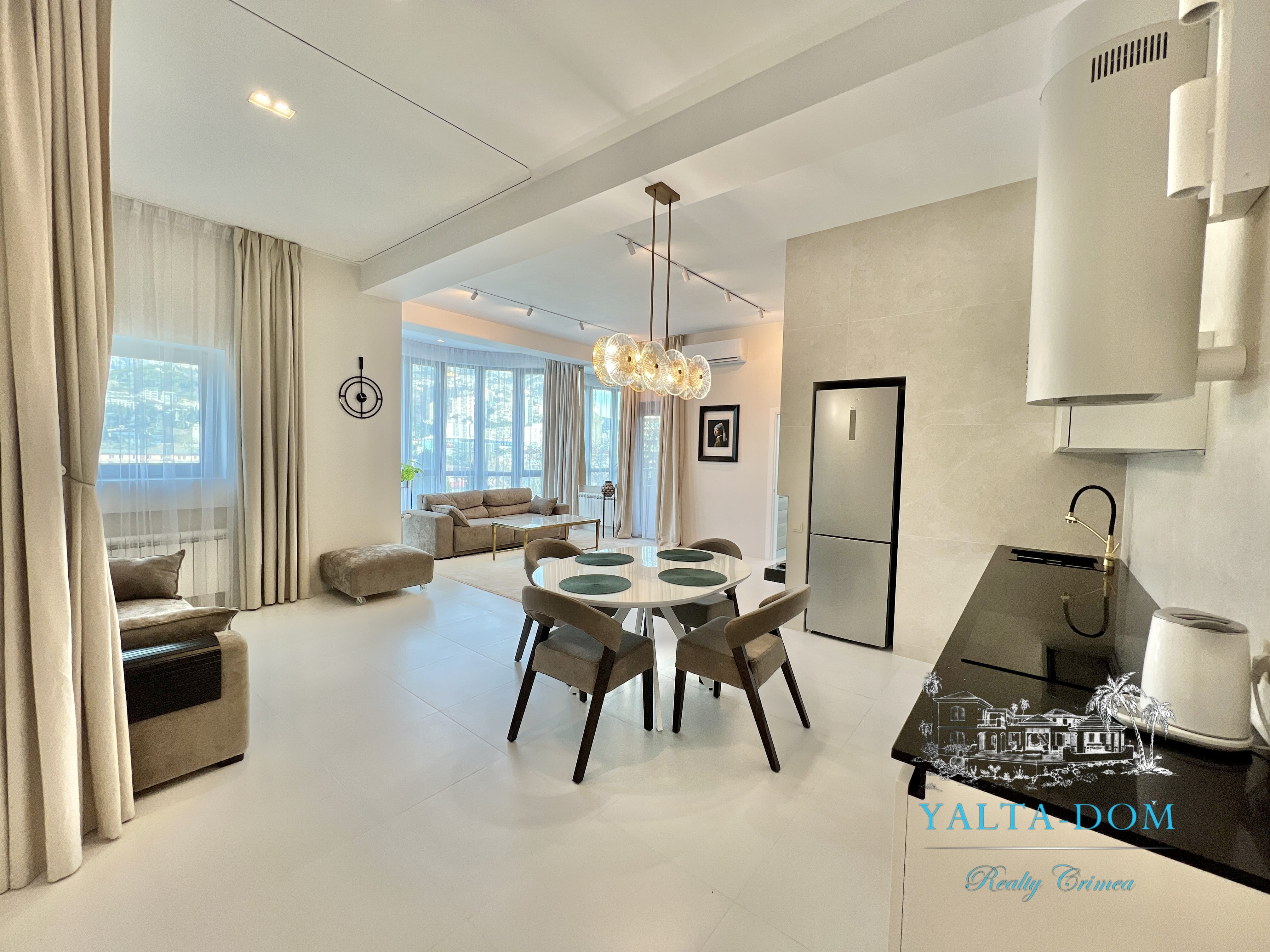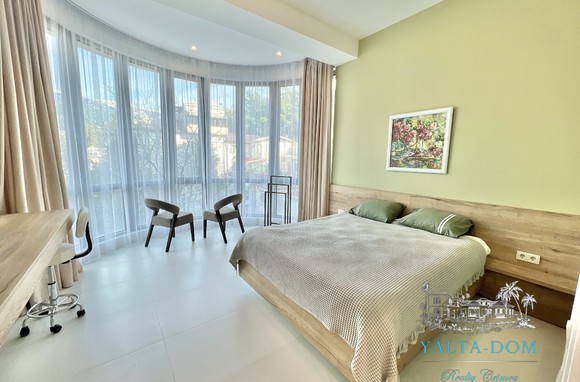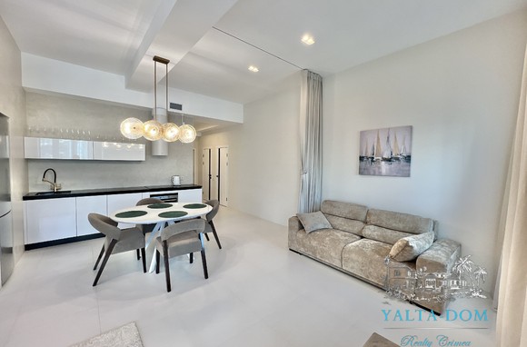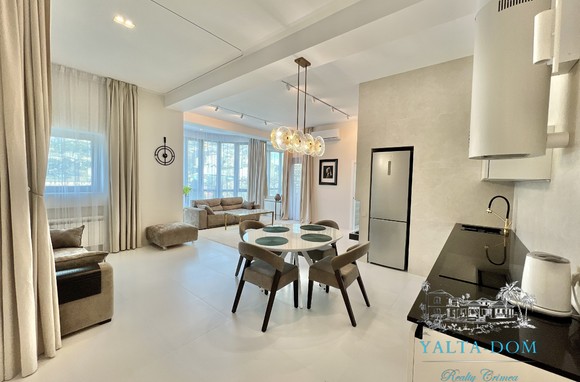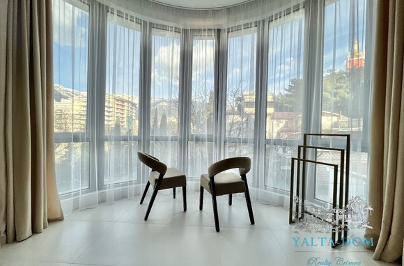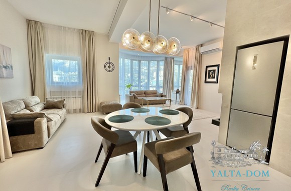 Апартамент с новым дизайнерским ремонтом 2023 года, третий этаж, 84 квадратных метра. Расположен возле моря, в самом сердце Ялты, в престижном комплексе «Эдинбург Тауэр». Апартамент полностью укомплектован бытовой техникой, включая посудомоечную машину и стиральную машину с сушкой. Панорамные окна с прекрасным видом на Ялту и величественные горы. С гостиной открывается боковой вид на море. Также имеется балкончик с выходом из гостиной.