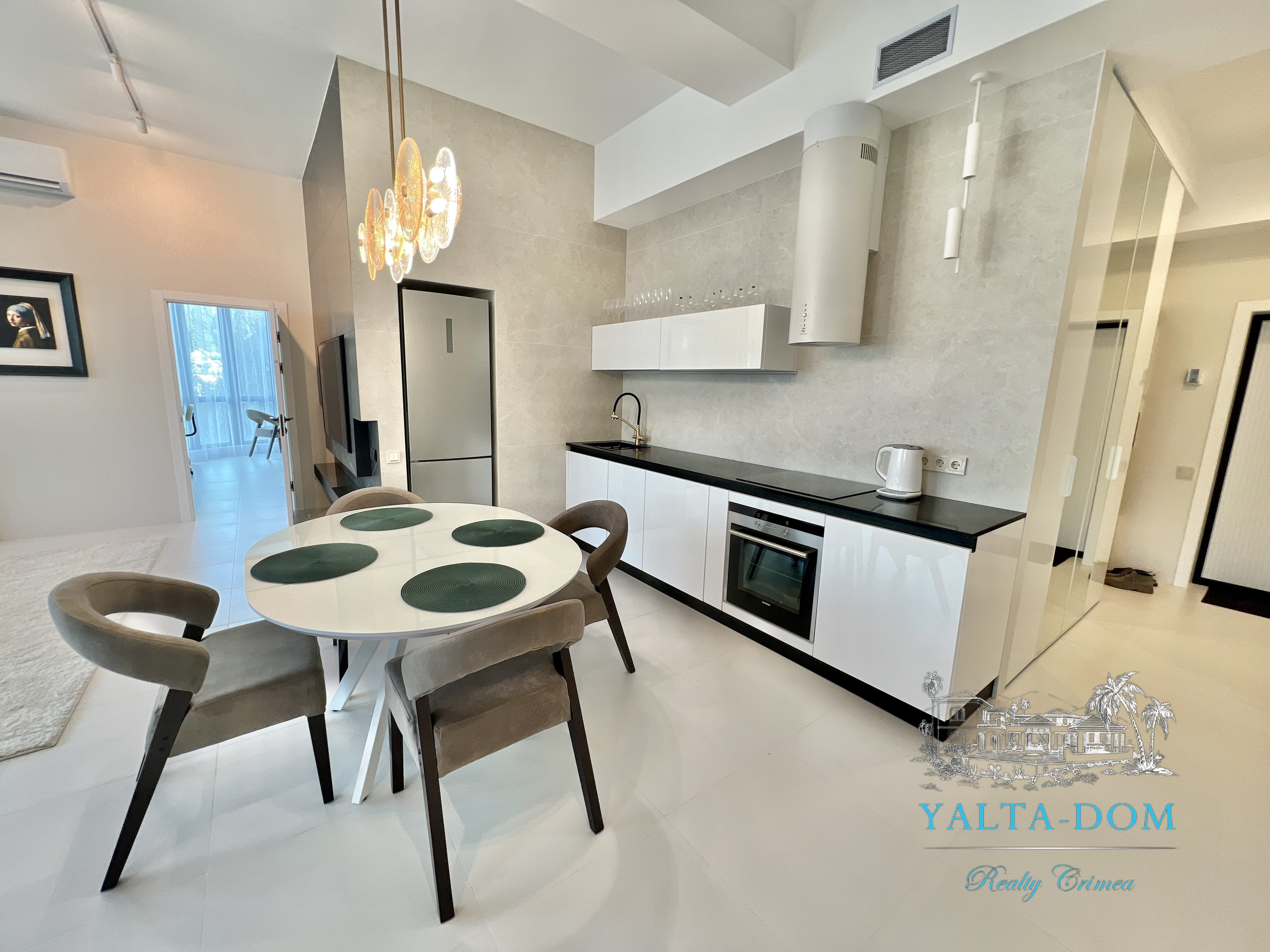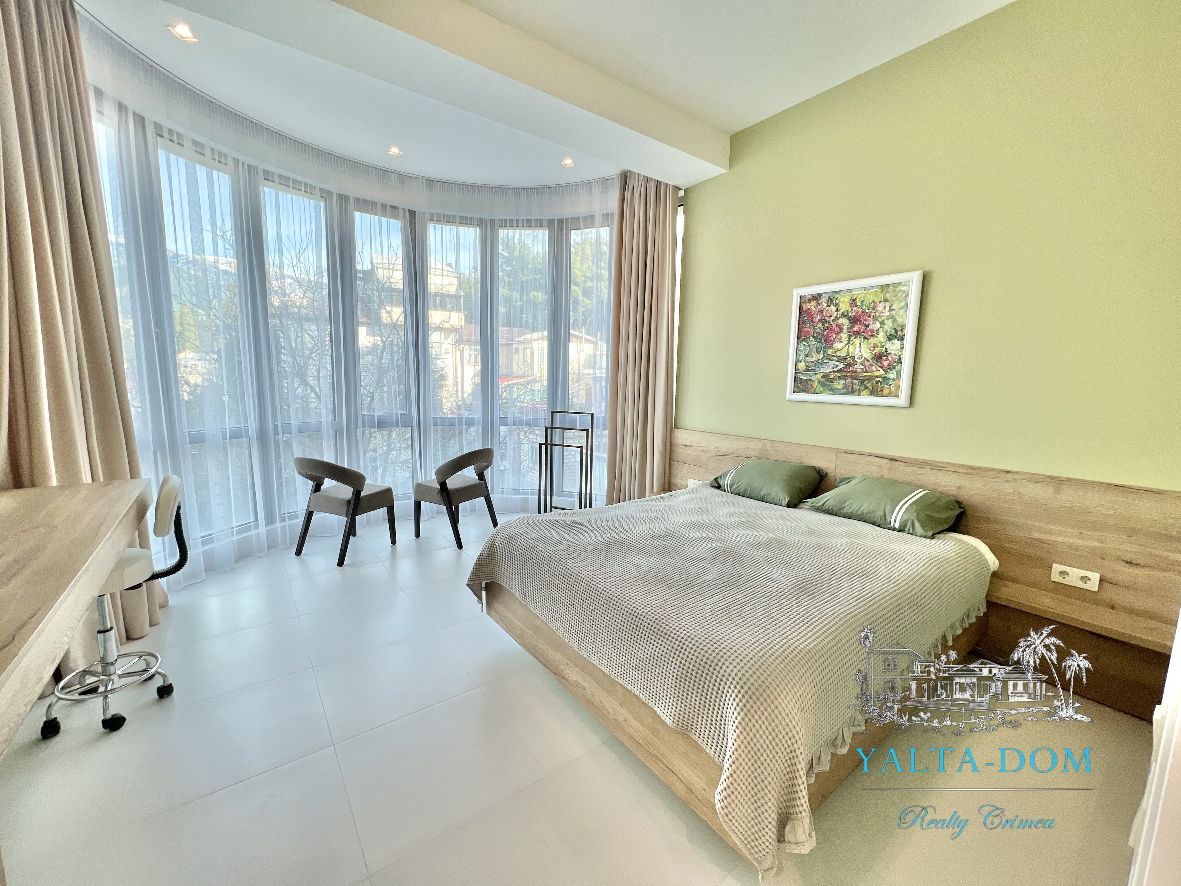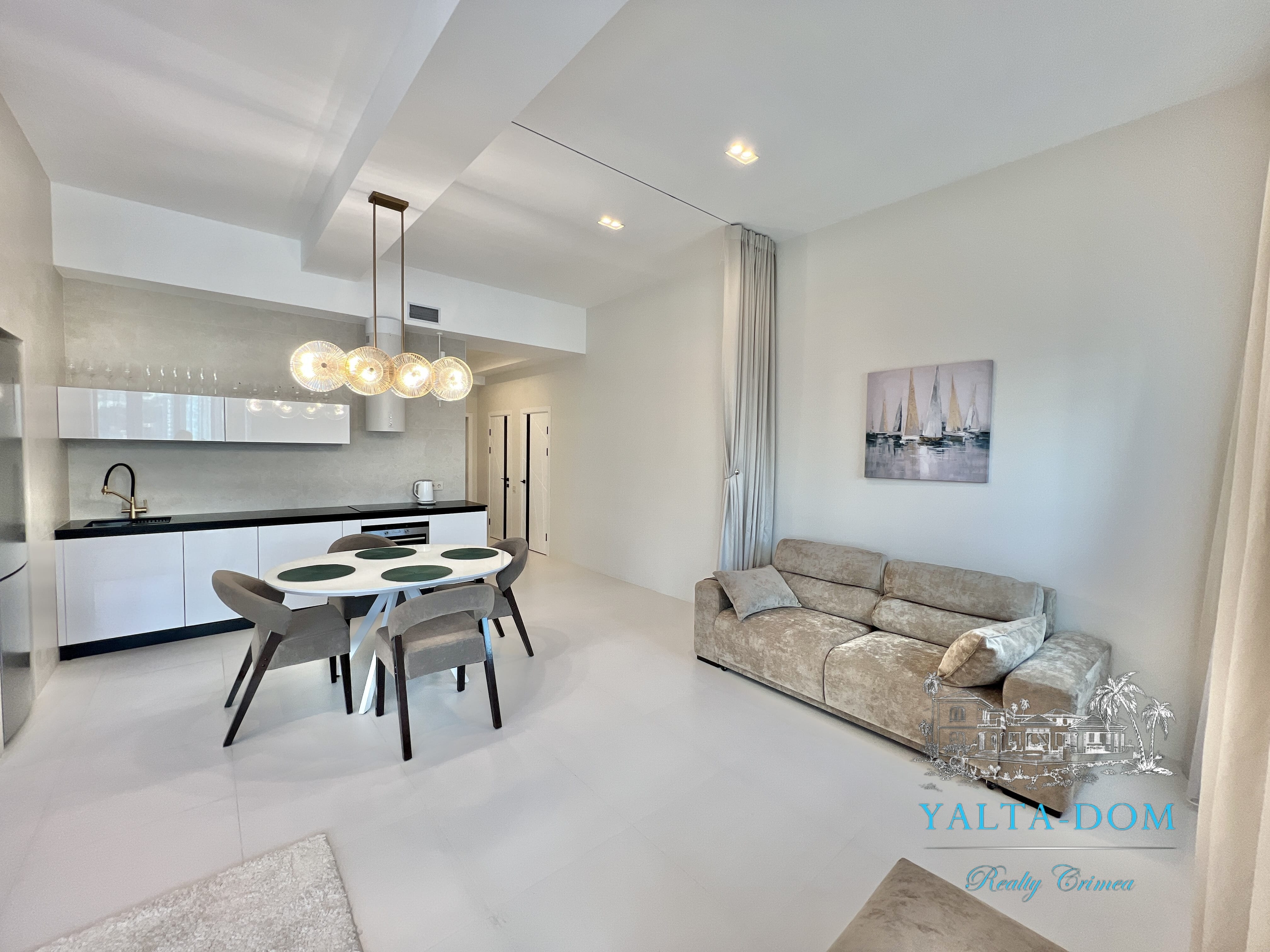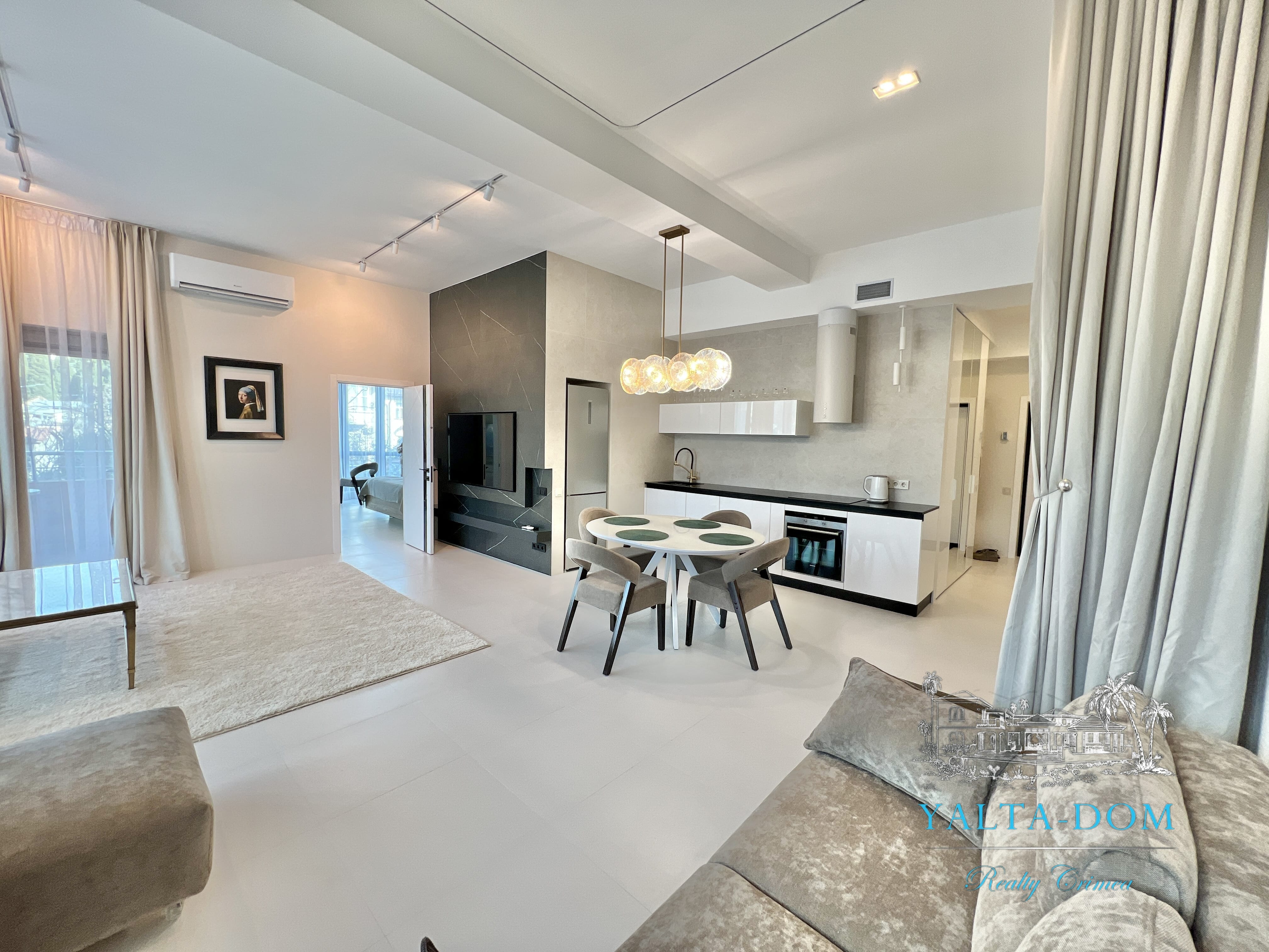 Апартамент с новым дизайнерским ремонтом 2023 года, третий этаж, 84 квадратных метра. Расположен возле моря, в самом сердце Ялты, в престижном комплексе «Эдинбург Тауэр». Апартамент полностью укомплектован бытовой техникой, включая посудомоечную машину и стиральную машину с сушкой. Панорамные окна с прекрасным видом на Ялту и величественные горы. С гостиной открывается боковой вид на море. Также имеется балкончик с выходом из гостиной.