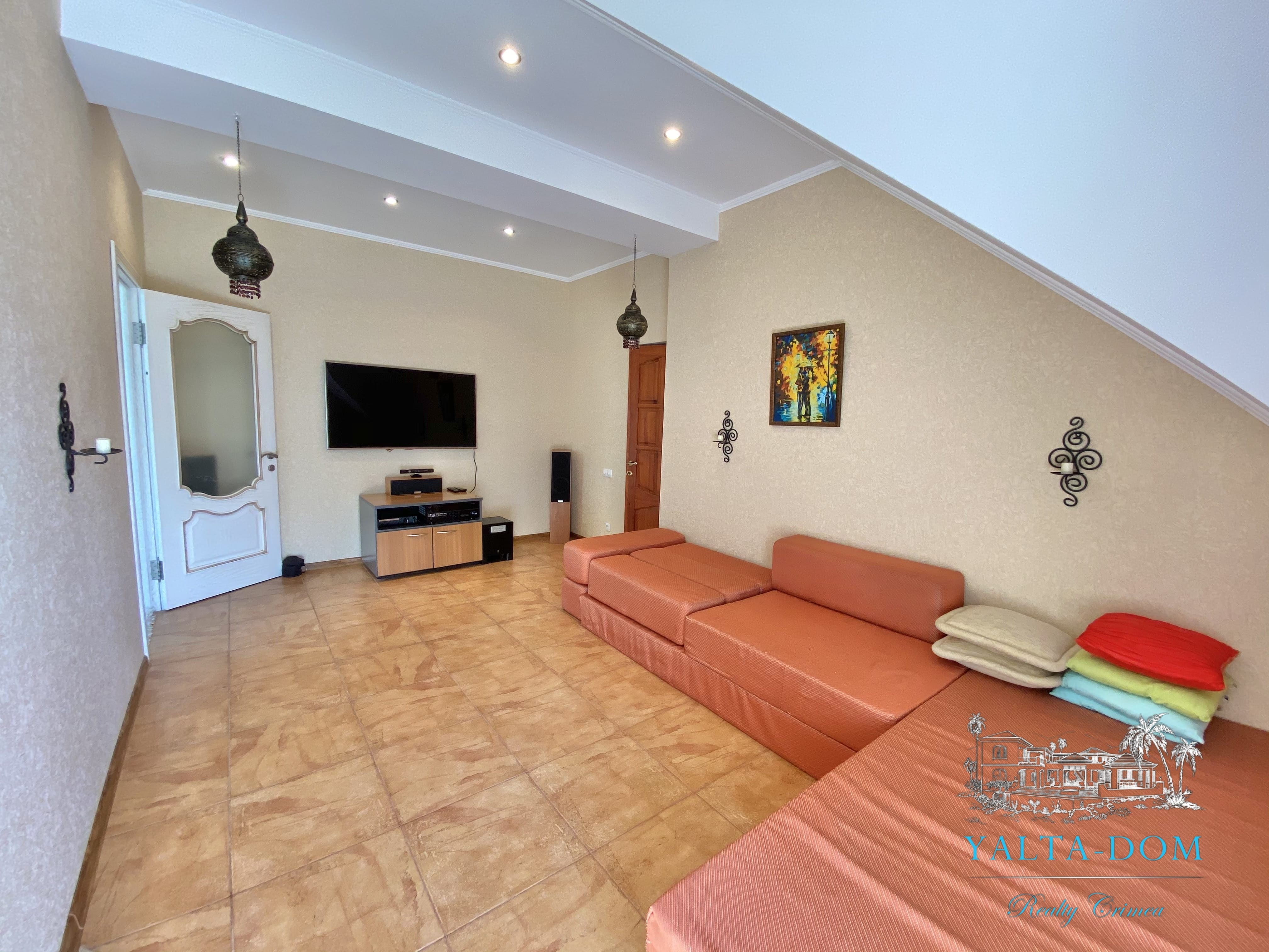 Автономная часть дома со своим входом и своей территорией. Два этажа общей площадью 165 квадратных метров, 2 спальни, 2 балкона, 2 гостиных, 2 санузла. Так же имеется комната отдыха как мини кинотеатр. Небольшая территория с летней мебелью и мангалом, просторное место для парковки трех автомобилей. Из дома выход в лес. Вокруг тишина, слышно лишь пение птиц.