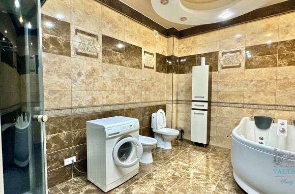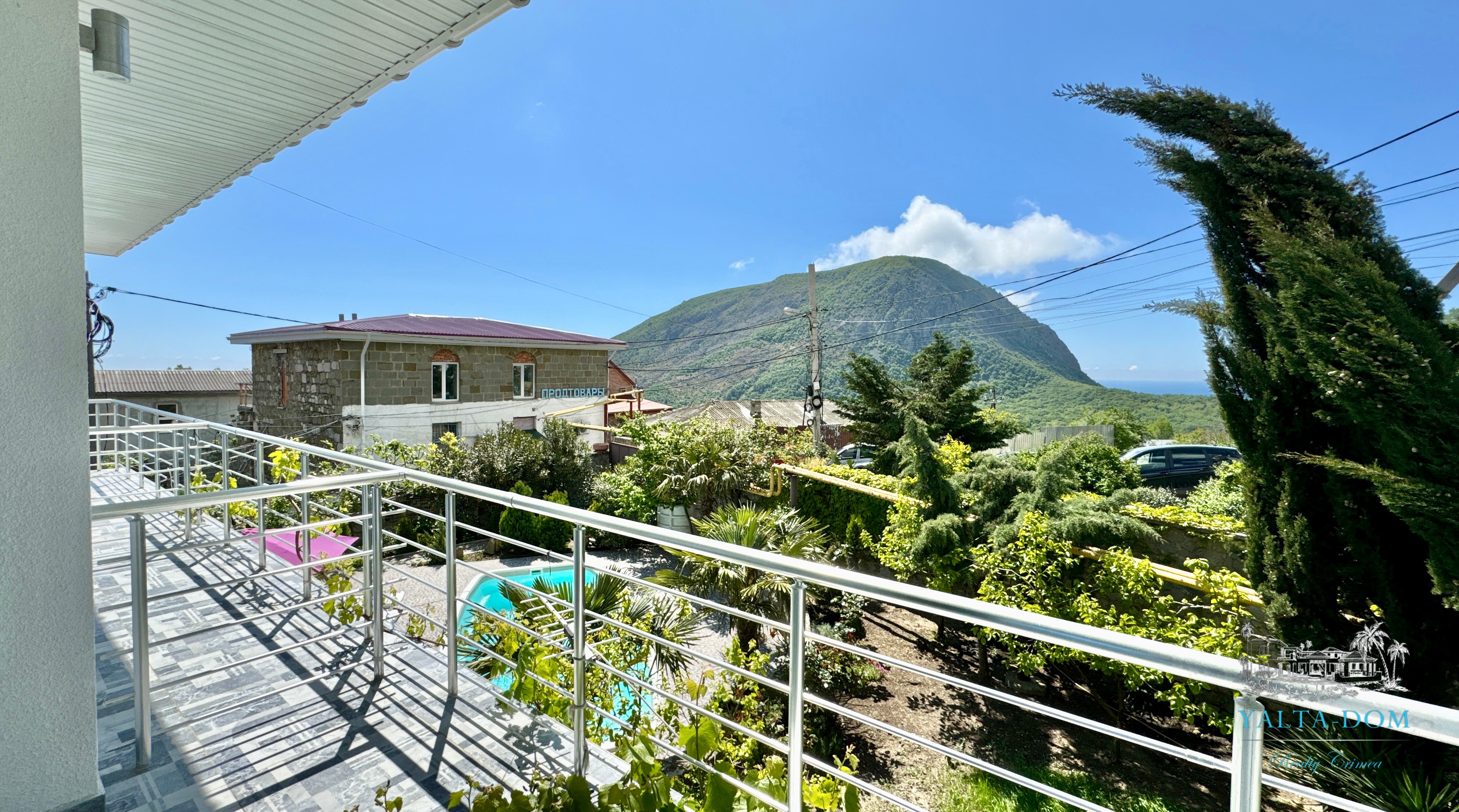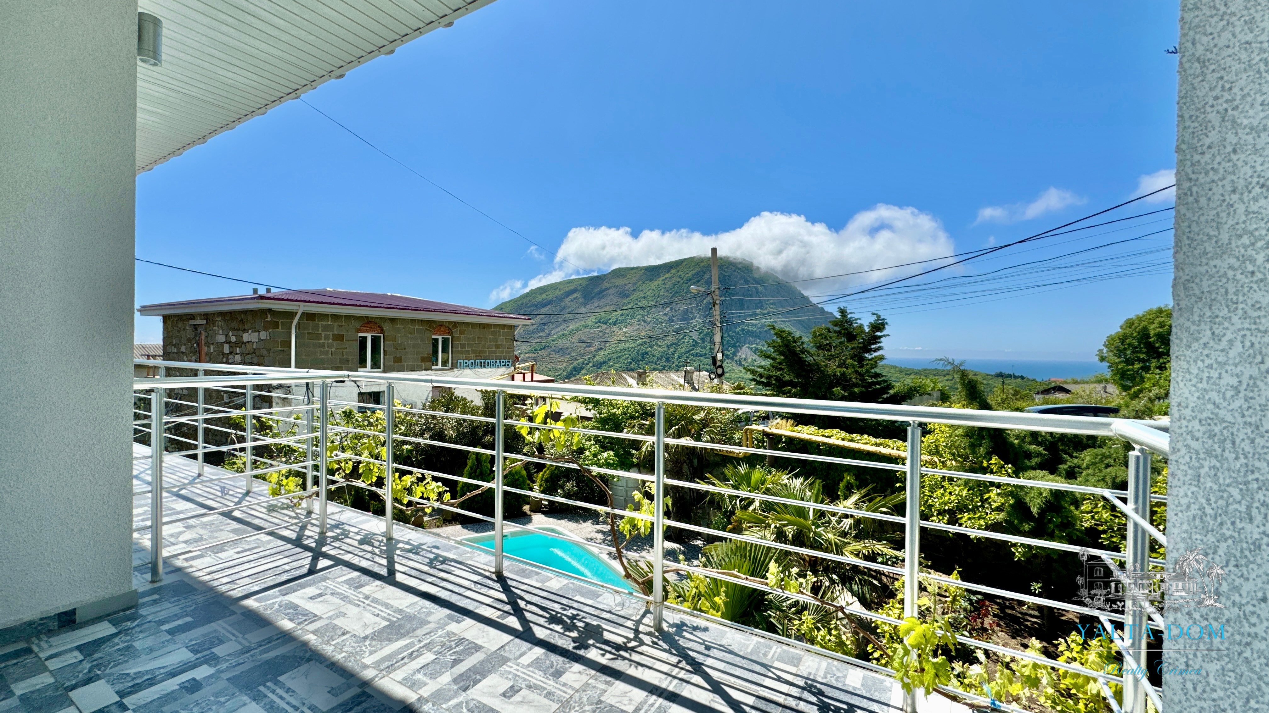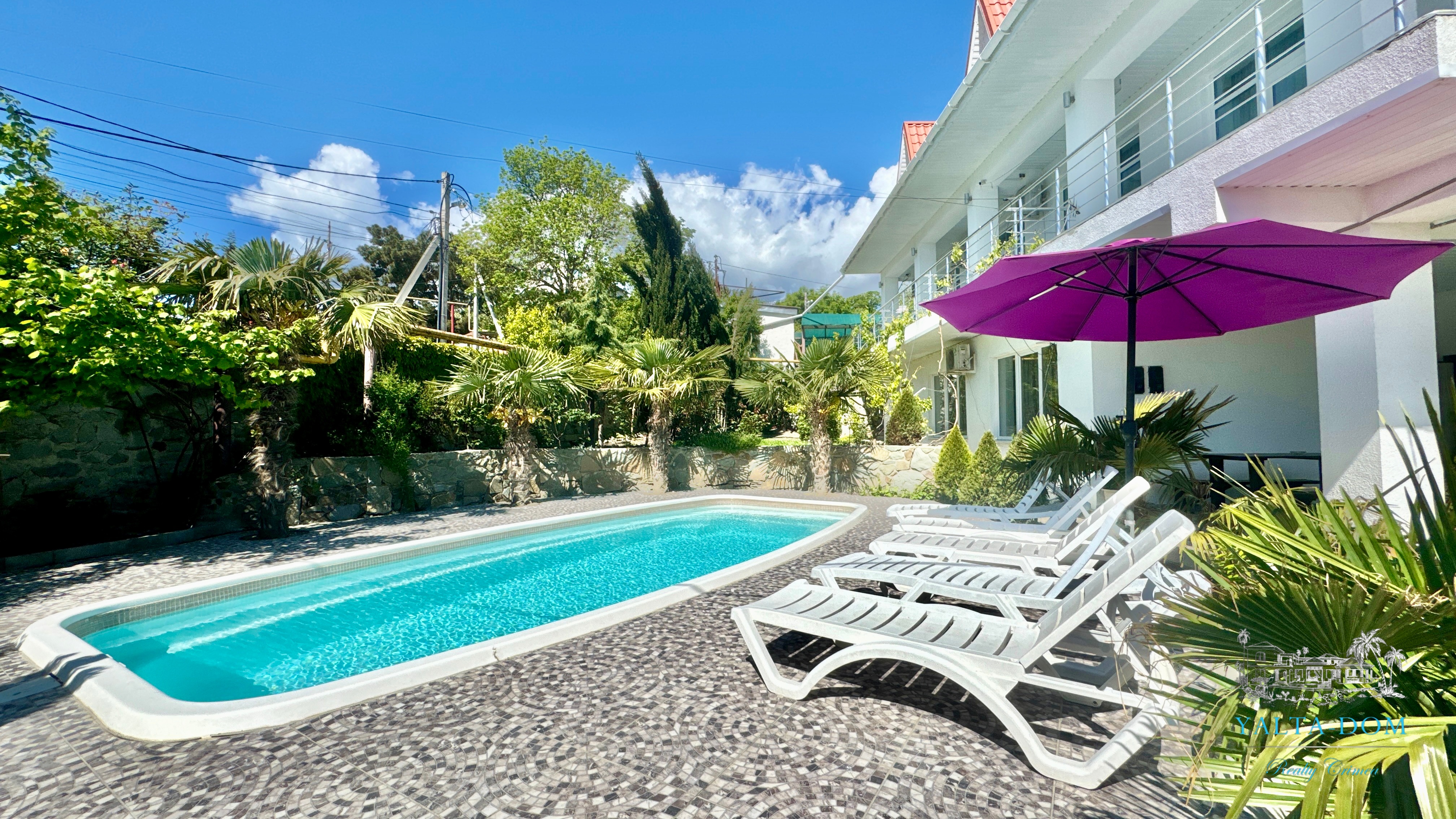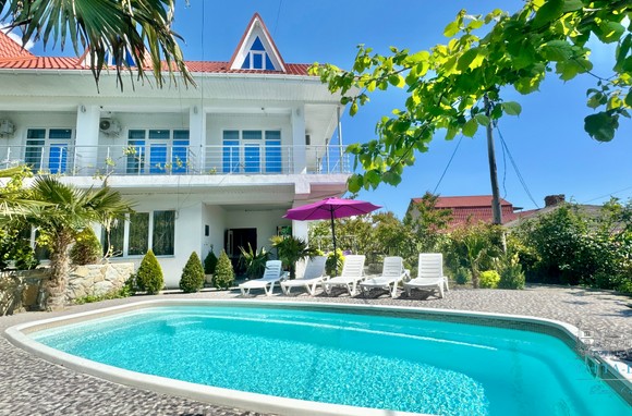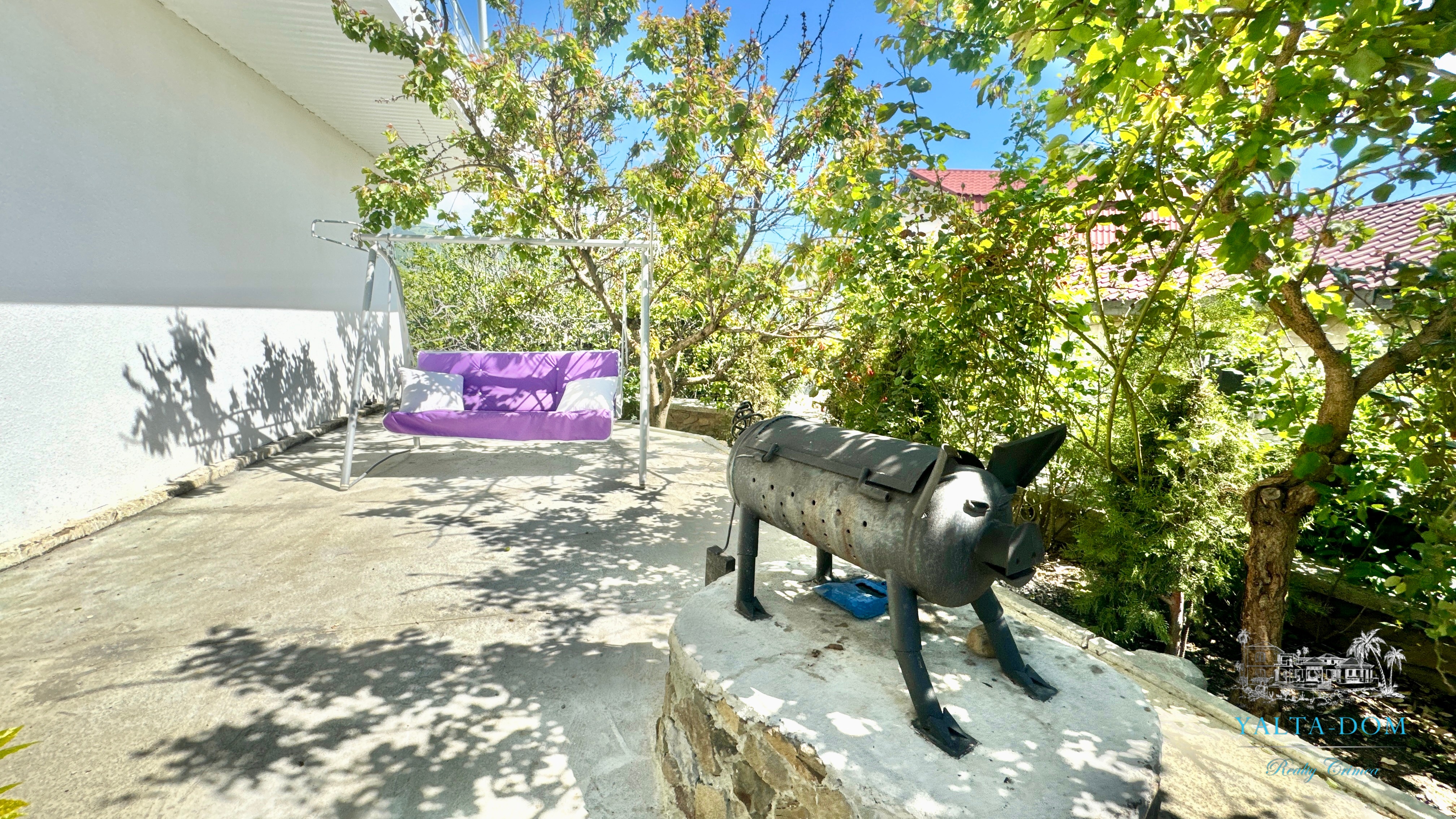 Трехэтажный дом новой постройки с открытым бассейном, общей площадью 300м2, на участке 10 соток. Во дворе дома, – бассейн (без подогрева), много зелени, небольшой сад с фруктовыми деревьями, садовые качели, мангал, мебель для отдыха и мангальная зона с видом на Аю-Даг. На территории участка, - парковка на две машины под навесом, через дорогу от дома, – еще одна парковка и новая детская площадка