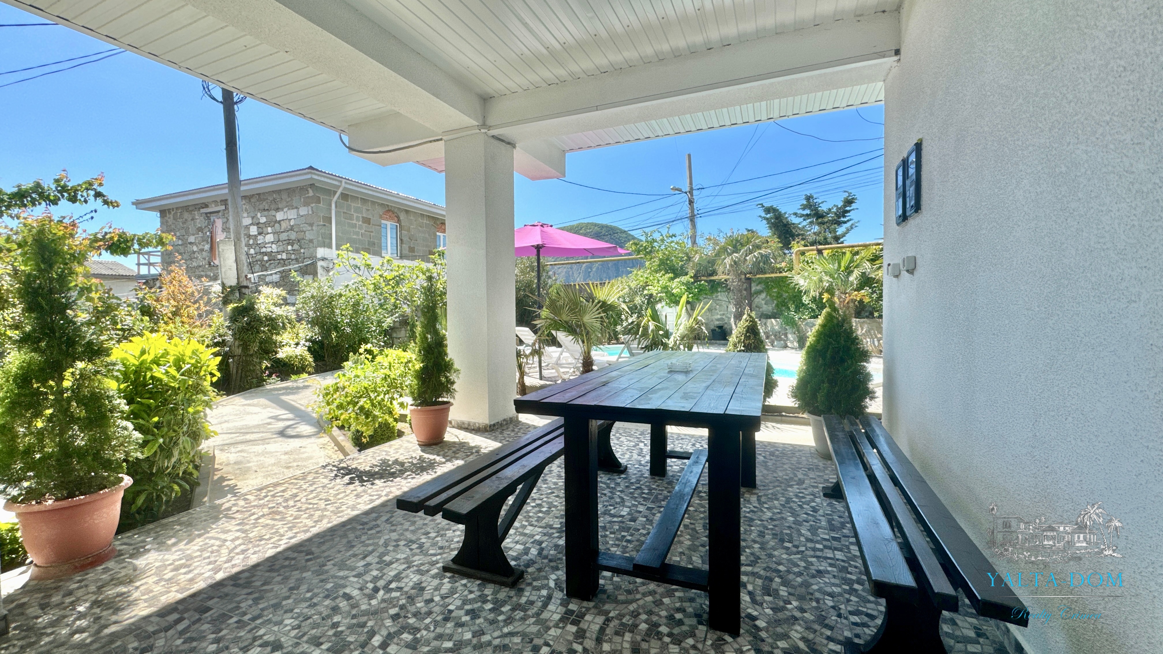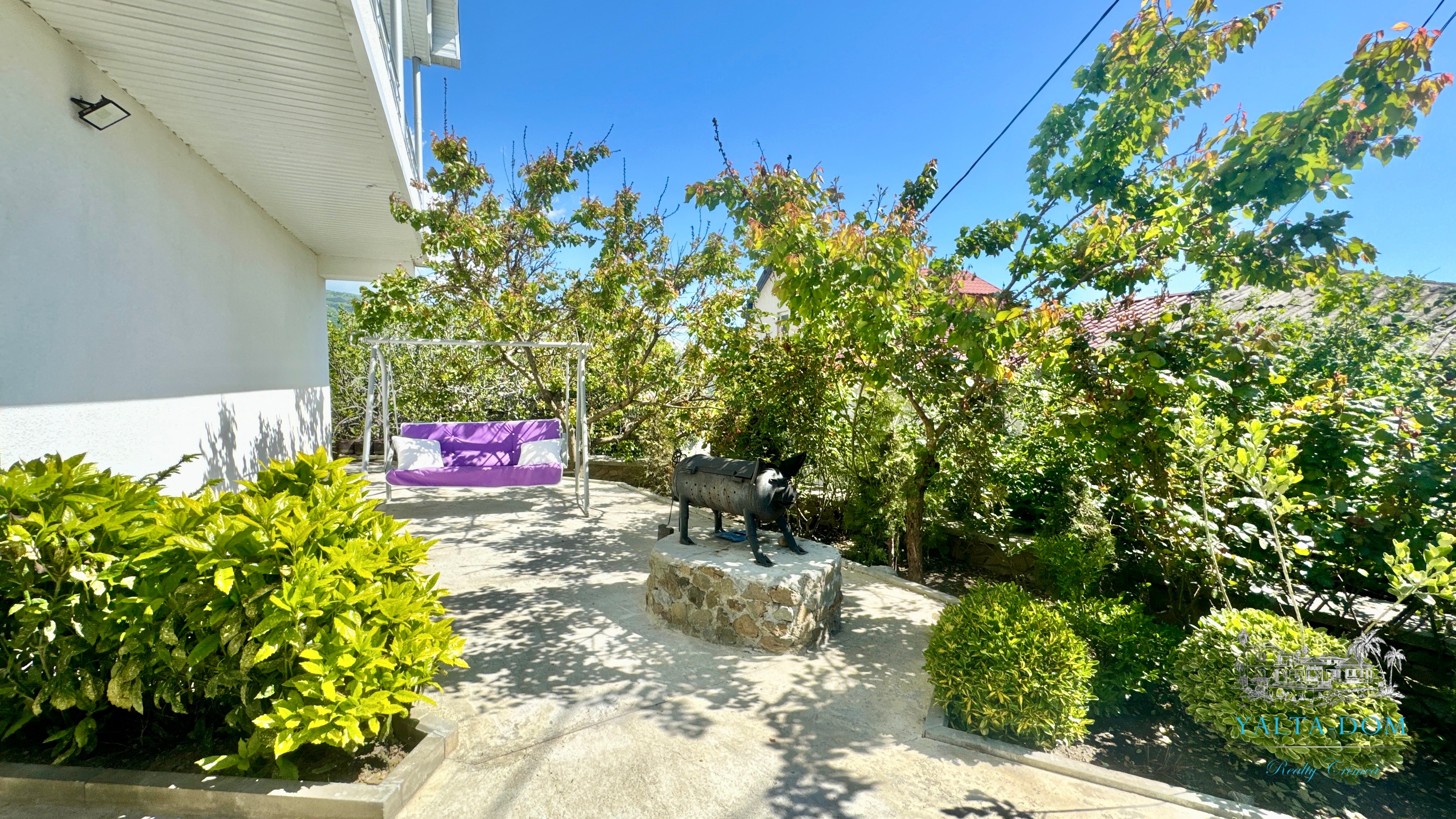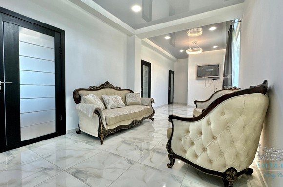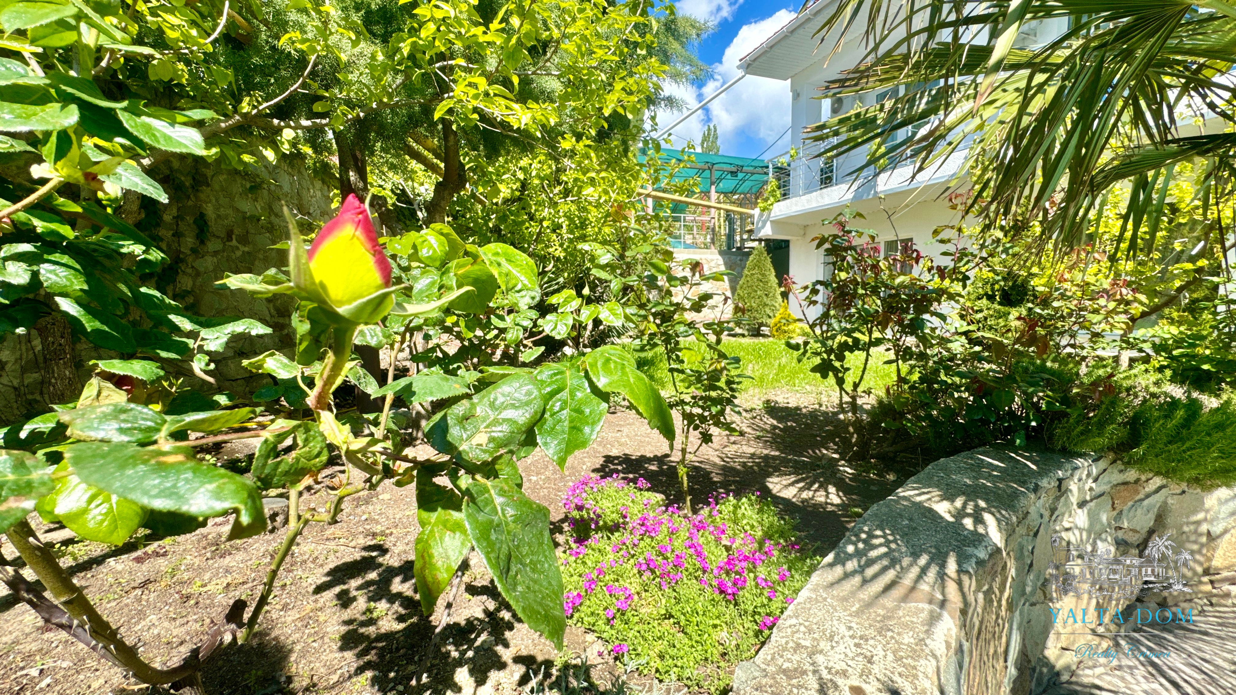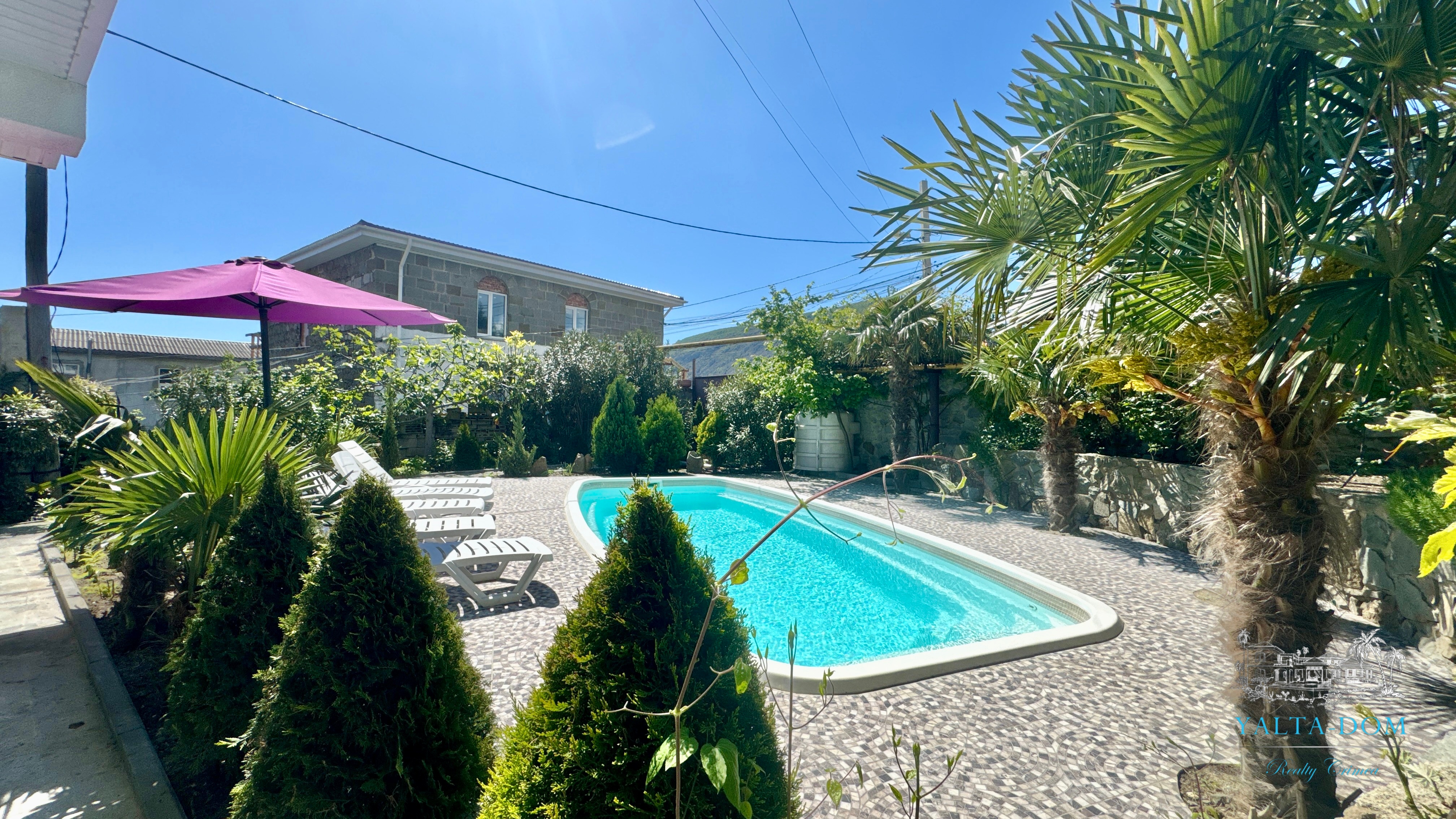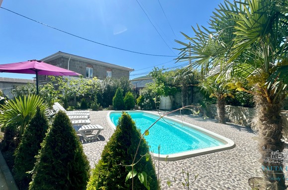 Трехэтажный дом новой постройки с открытым бассейном, общей площадью 300м2, на участке 10 соток. Во дворе дома, – бассейн (без подогрева), много зелени, небольшой сад с фруктовыми деревьями, садовые качели, мангал, мебель для отдыха и мангальная зона с видом на Аю-Даг. На территории участка, - парковка на две машины под навесом, через дорогу от дома, – еще одна парковка и новая детская площадка