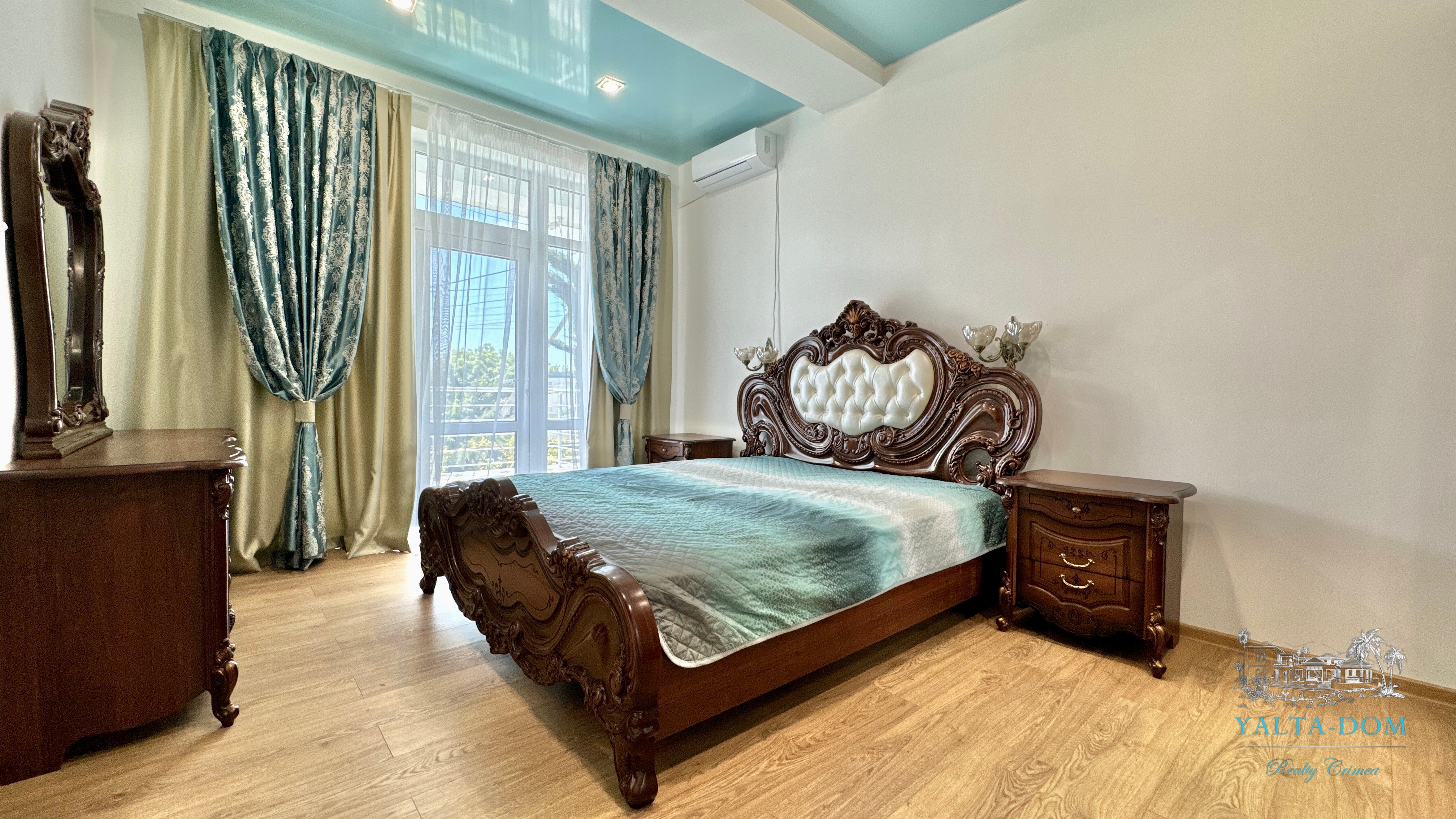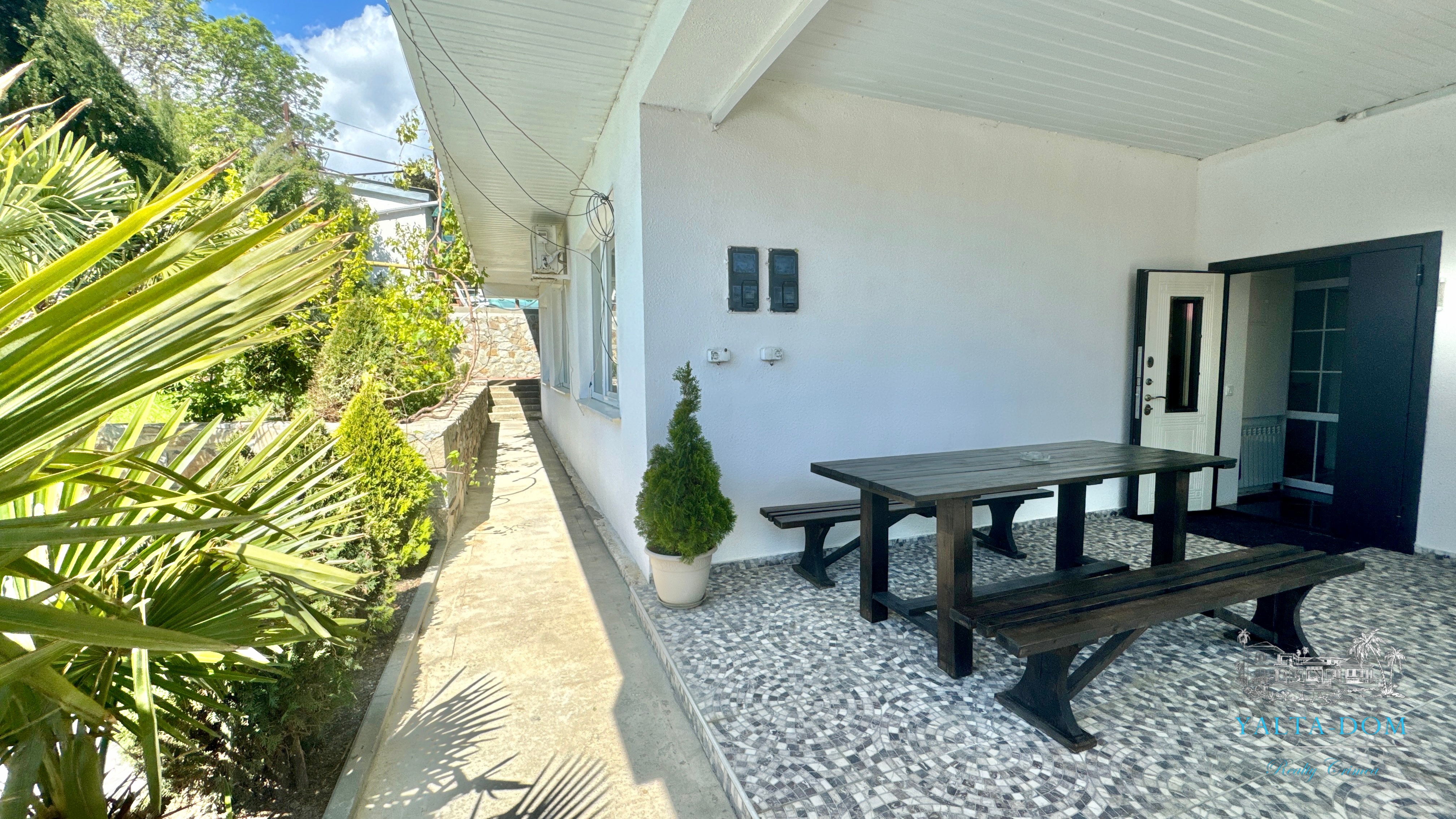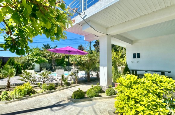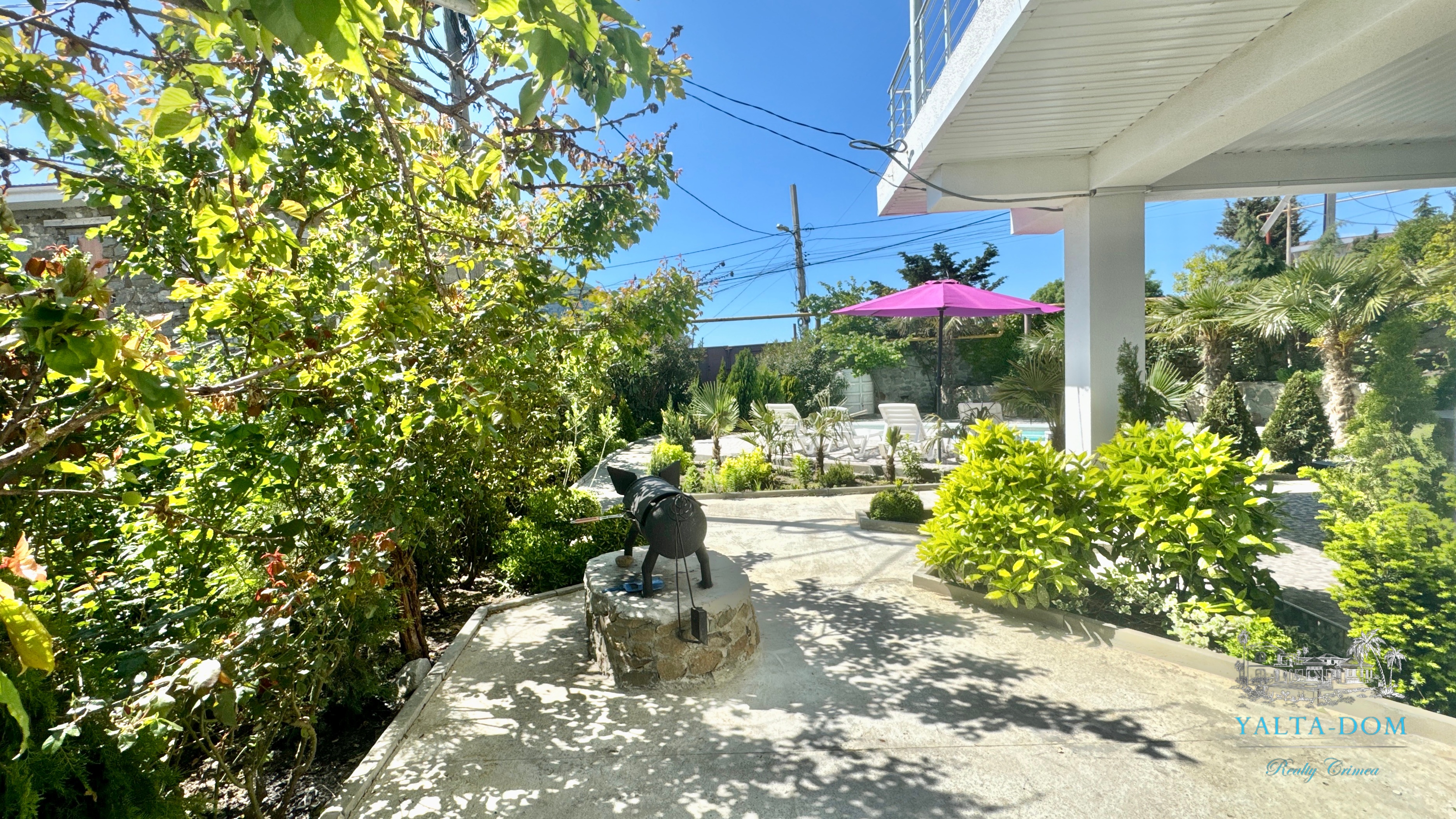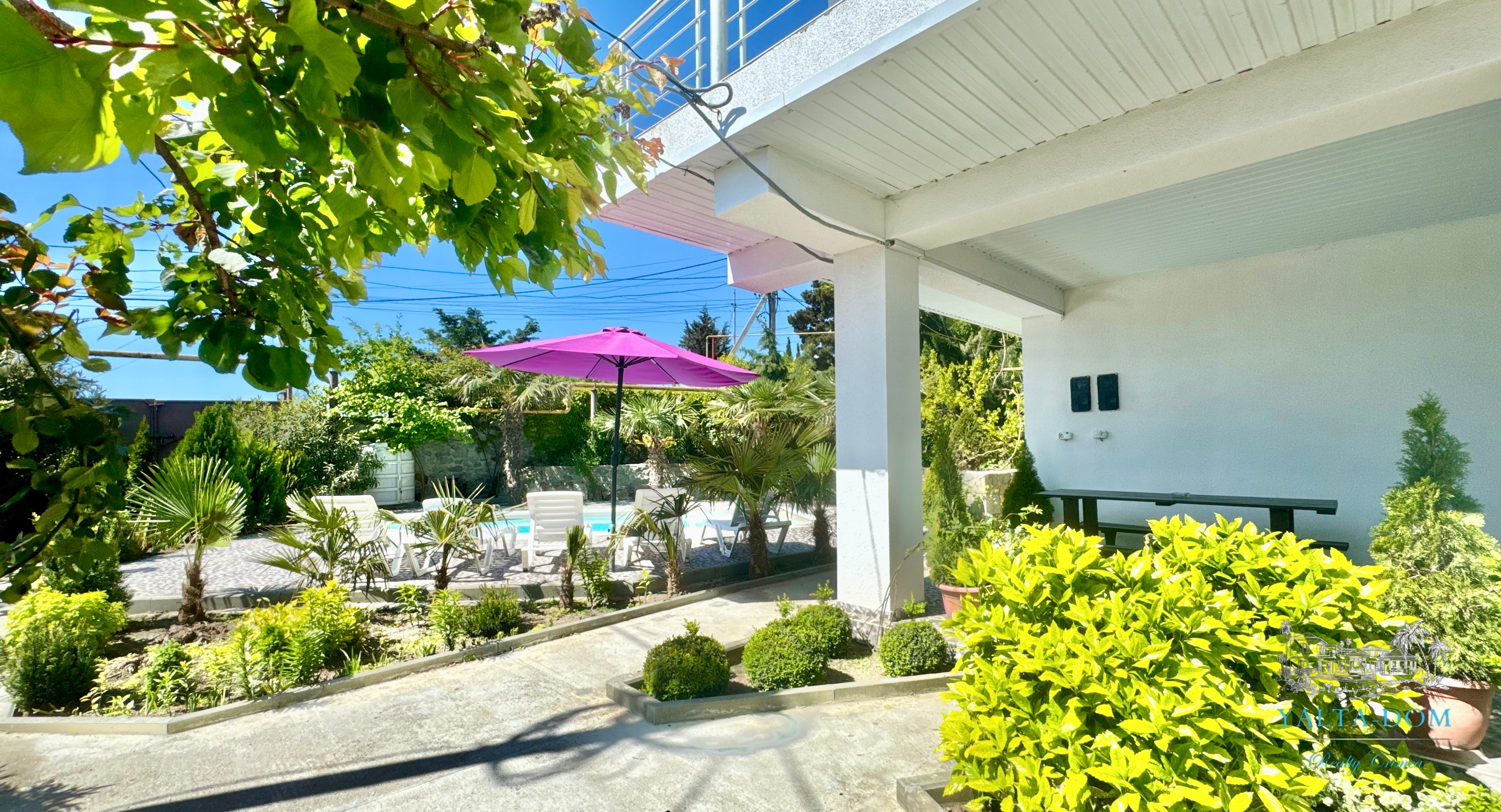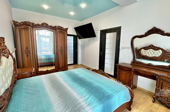 Трехэтажный дом новой постройки с открытым бассейном, общей площадью 300м2, на участке 10 соток. Во дворе дома, – бассейн (без подогрева), много зелени, небольшой сад с фруктовыми деревьями, садовые качели, мангал, мебель для отдыха и мангальная зона с видом на Аю-Даг. На территории участка, - парковка на две машины под навесом, через дорогу от дома, – еще одна парковка и новая детская площадка