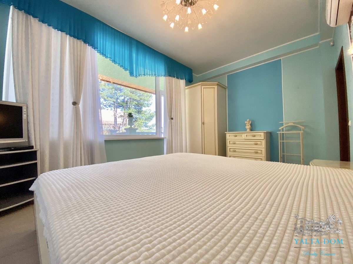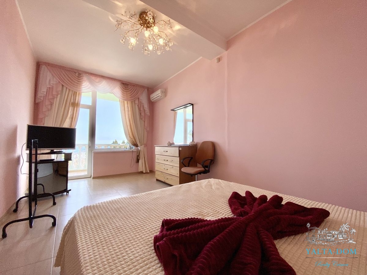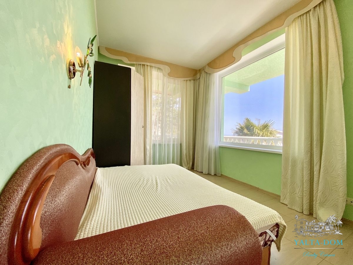 Шикарный семейный дом, с бассейном, видом на море и чудесным ароматом реликтовых кипарисов. Трехэтажный дом, площадью 238 квадратных метра. Первая спальня с двуспальной кроватью и выходом на балкон. Вторая спальня с раскладным диваном и выходом на балкон с видом на море. Третья спальня с двуспальной кроватью, шкафом и видом на парковую зону. Четвертая спальня с двуспальной кроватью, собственным санузлом с панорамным видом на море. Кухня-гостиная с зоной отдыха с диваном и креслом и кухонная зона со всем необходимым оборудованием для приготовления вкусных блюд. Три санузла, на первом, втором и третьем этажах с душевой кабиной или ванной.