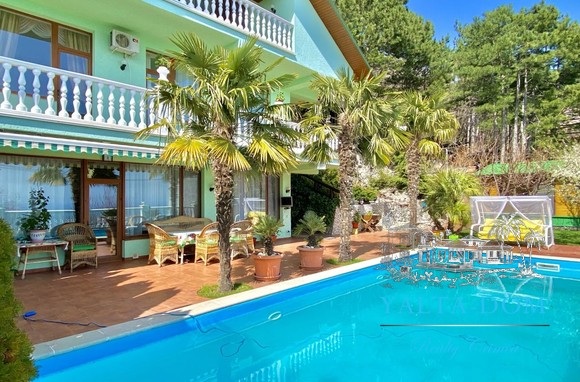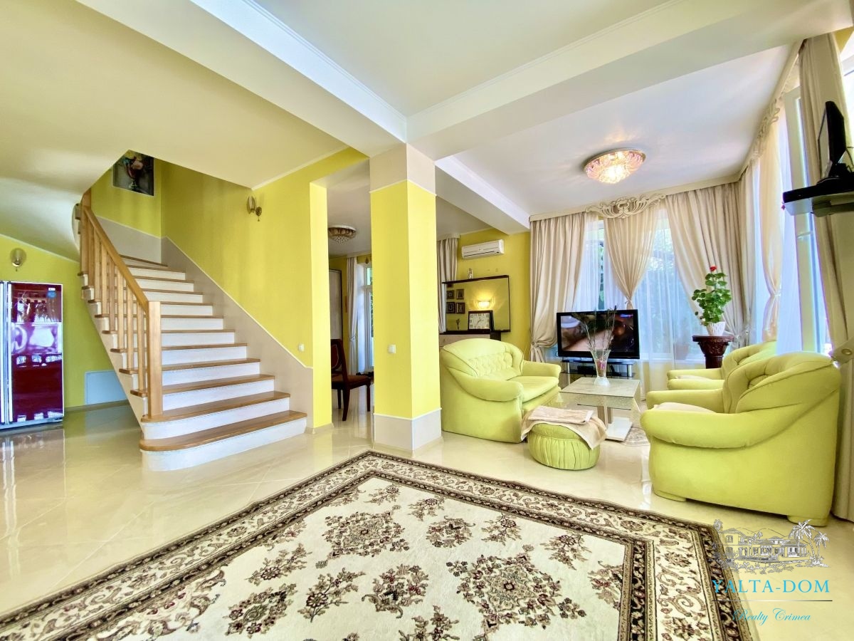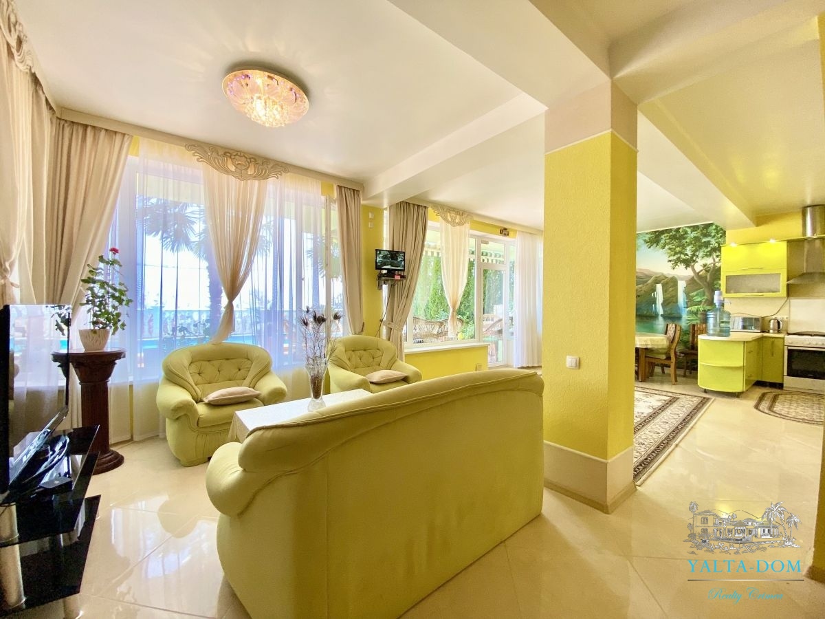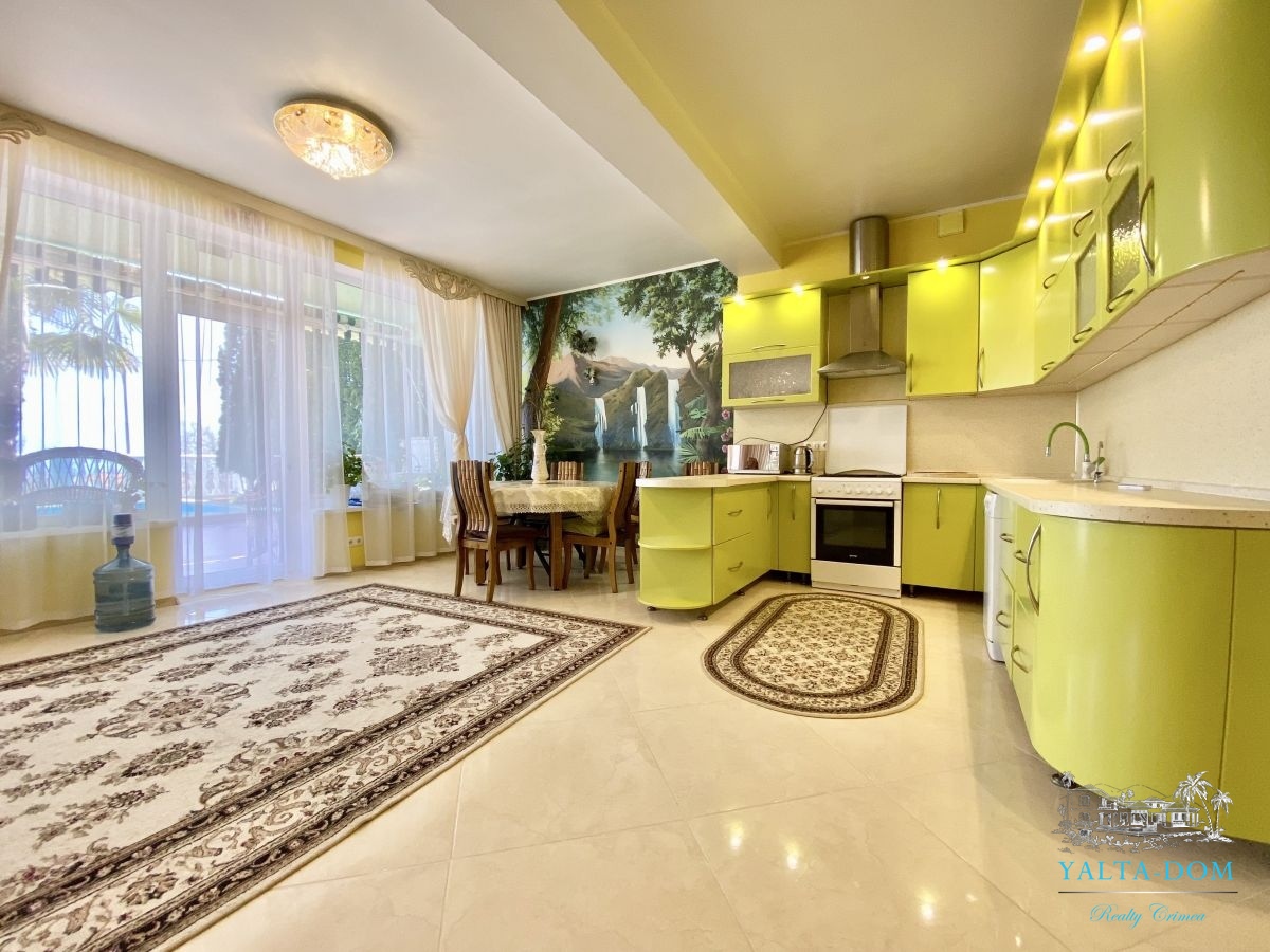 Шикарный семейный дом, с бассейном, видом на море и чудесным ароматом реликтовых кипарисов. Трехэтажный дом, площадью 238 квадратных метра. Первая спальня с двуспальной кроватью и выходом на балкон. Вторая спальня с раскладным диваном и выходом на балкон с видом на море. Третья спальня с двуспальной кроватью, шкафом и видом на парковую зону. Четвертая спальня с двуспальной кроватью, собственным санузлом с панорамным видом на море. Кухня-гостиная с зоной отдыха с диваном и креслом и кухонная зона со всем необходимым оборудованием для приготовления вкусных блюд. Три санузла, на первом, втором и третьем этажах с душевой кабиной или ванной.
