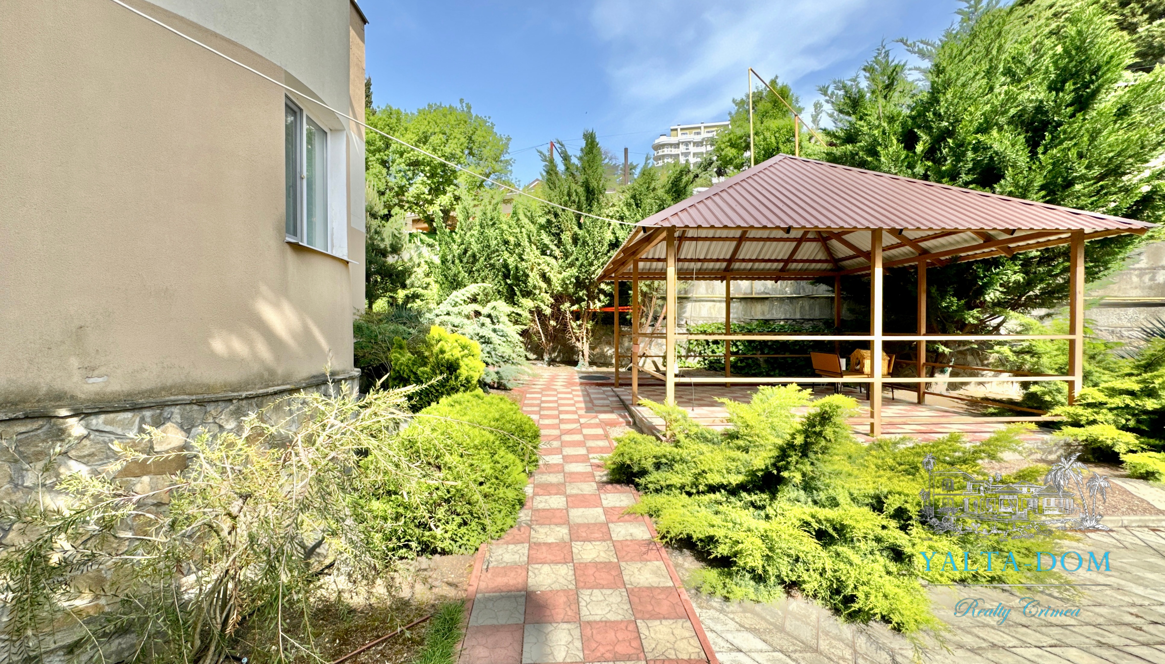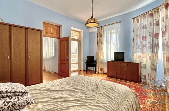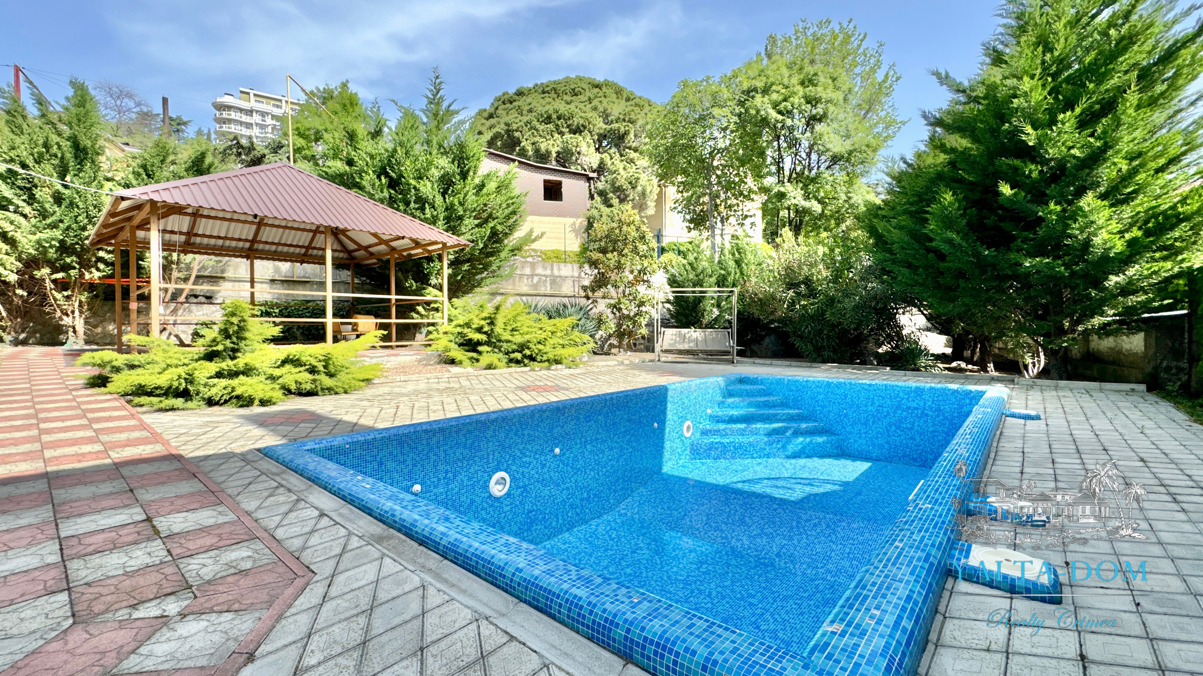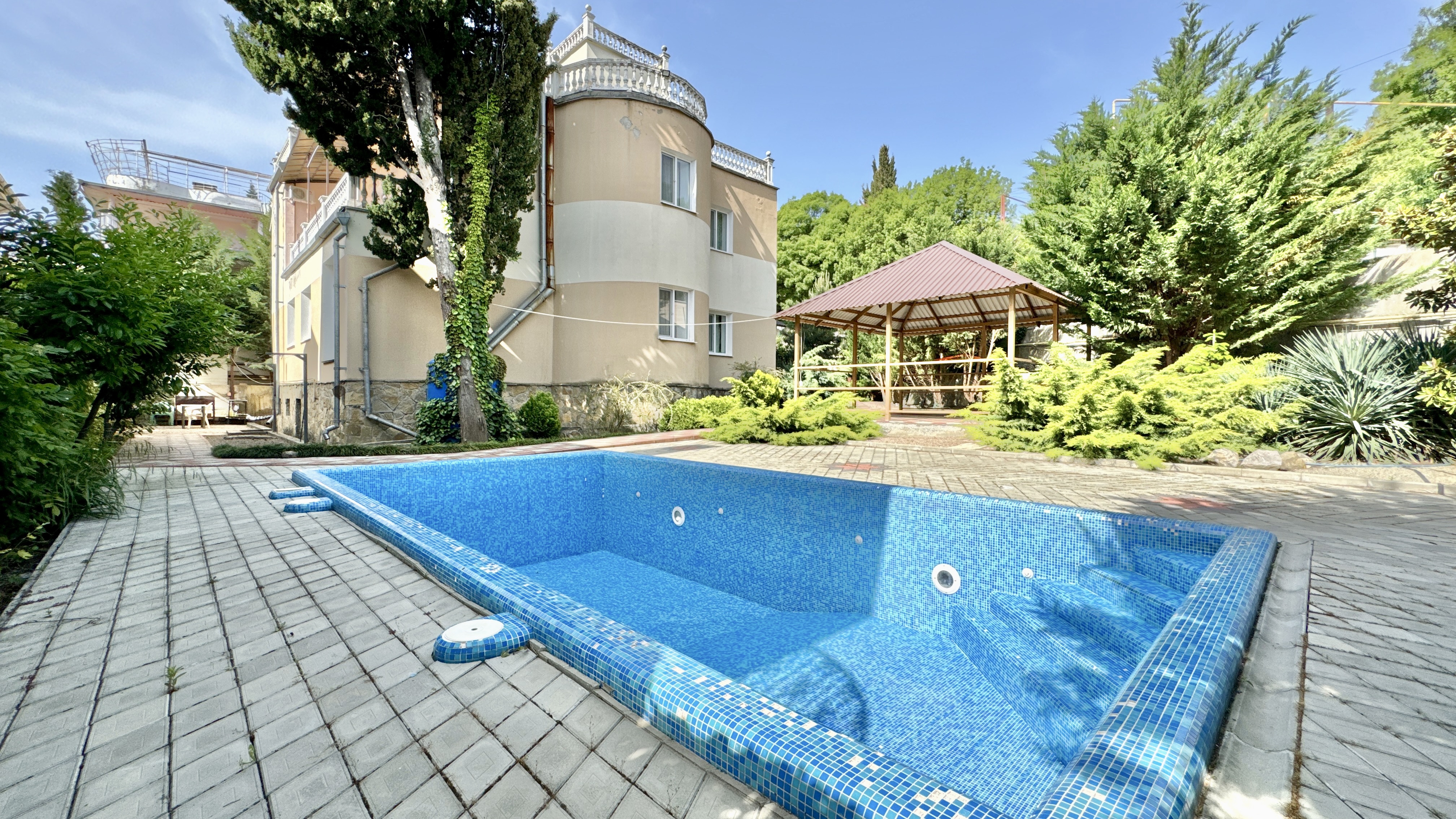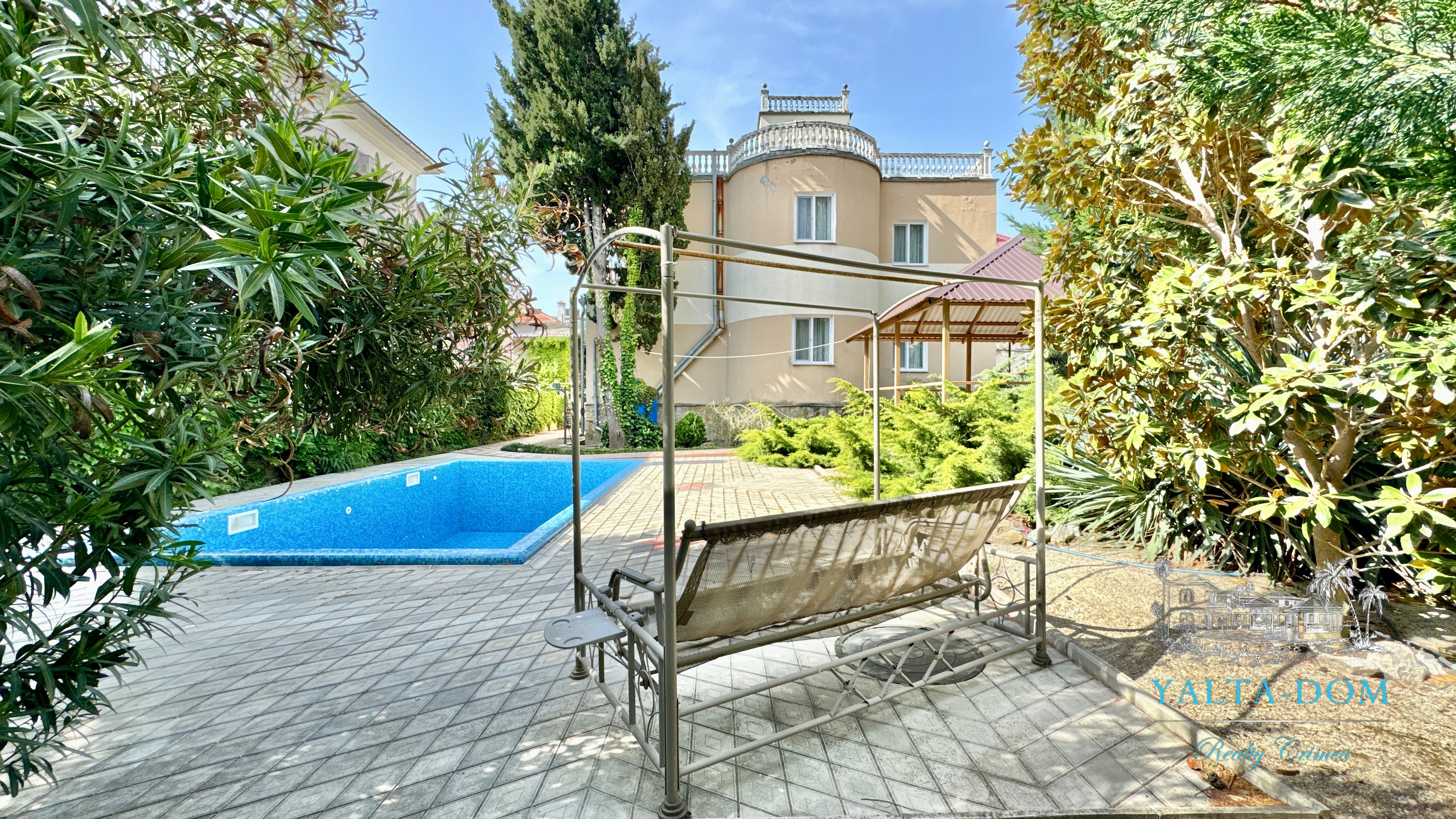 Двухэтажный дом с открытым бассейном, общей площадью 250 м2, на участке 4 сотки, расположен в престижном районе Ливадии среди виноградников, пешая доступность к пляжу. Спуск на территорию дома по лестнице (последнее фото в каталоге). На территории дома расположен бассейн, зона барбекю, беседка, качели для отдыха.
