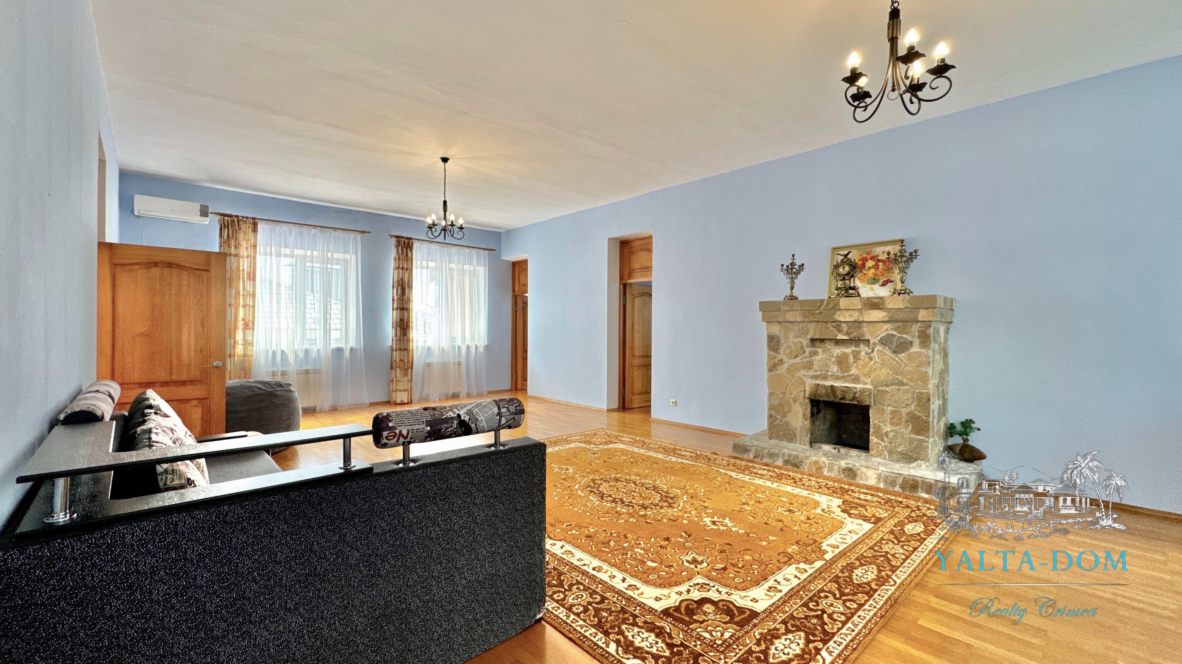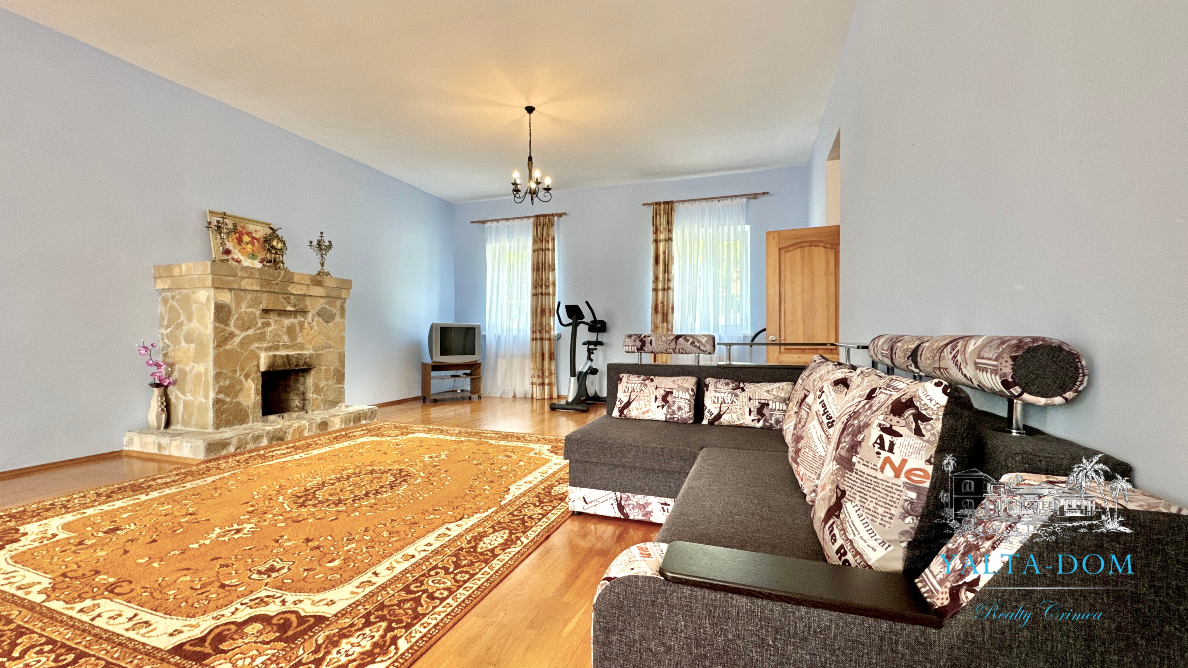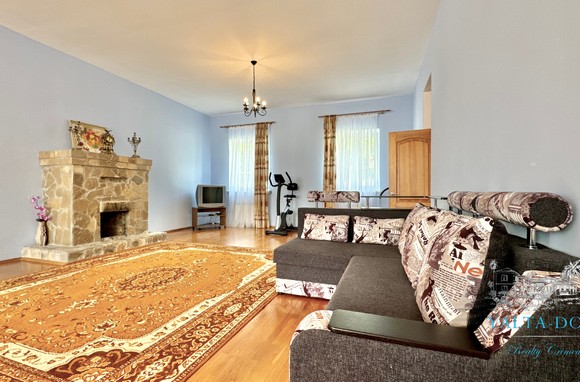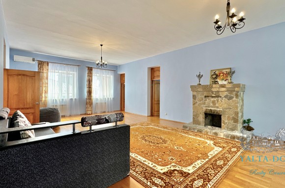 В доме: зал с камином, пять спален, два санузла, две гостиные из них одна с камином.