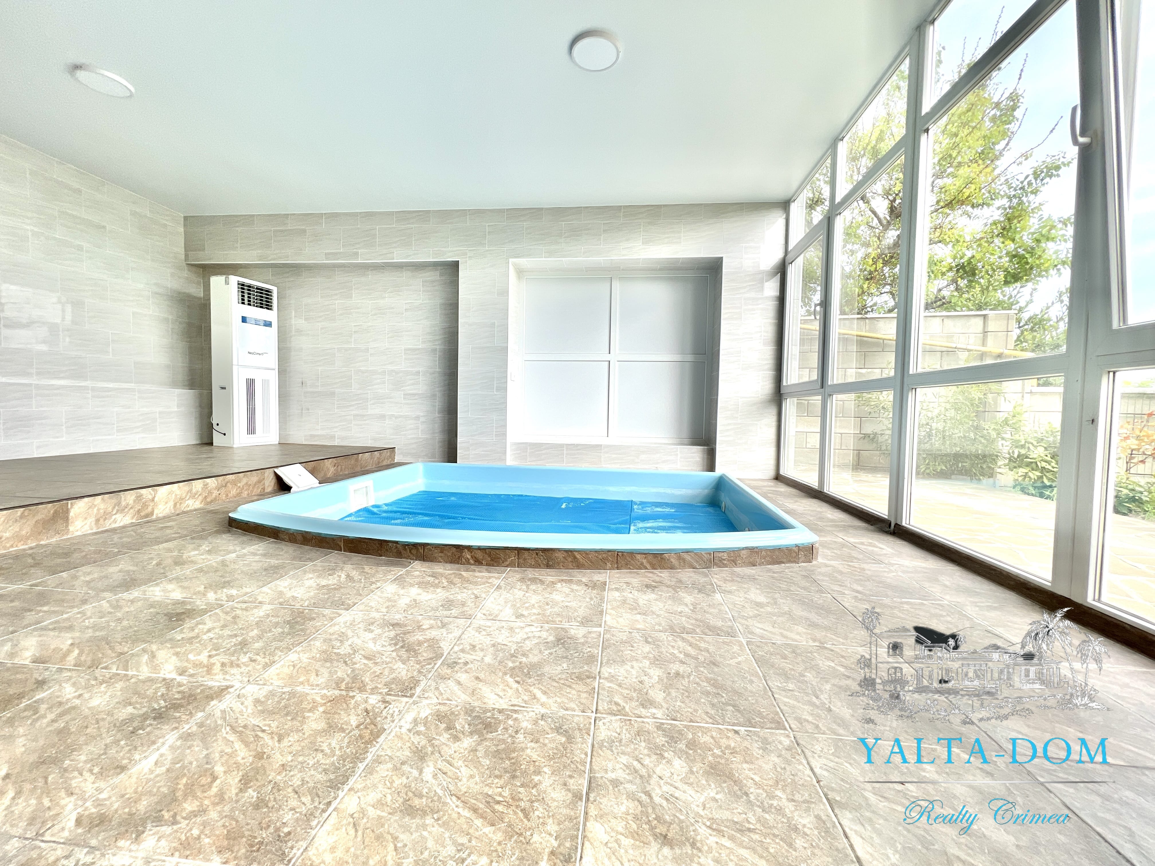 Первый этаж, полу-цоколь: зеленый двор, крытый бассейн с подогревом, зал для настольных игр, караоке и отдыха.