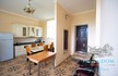 На первом этаже отдыхающих ждет кухня-столовая гостиного типа, где есть кухонный гарнитур и девайсы для создания в отпуске кулинарных шедевров. Также здесь есть зона отдыха, где можно расположиться на диване.