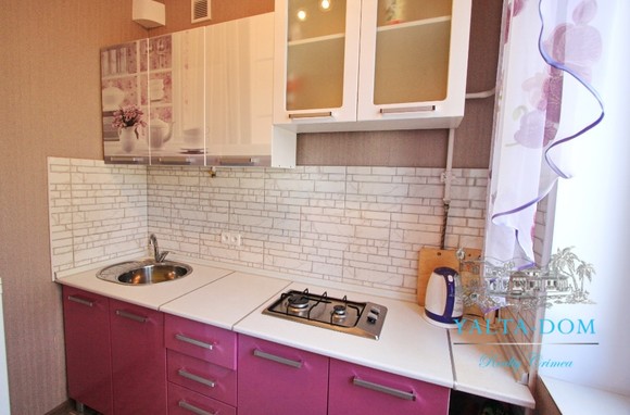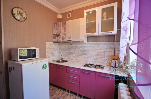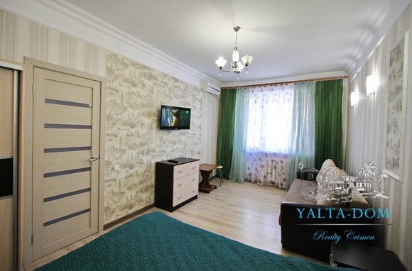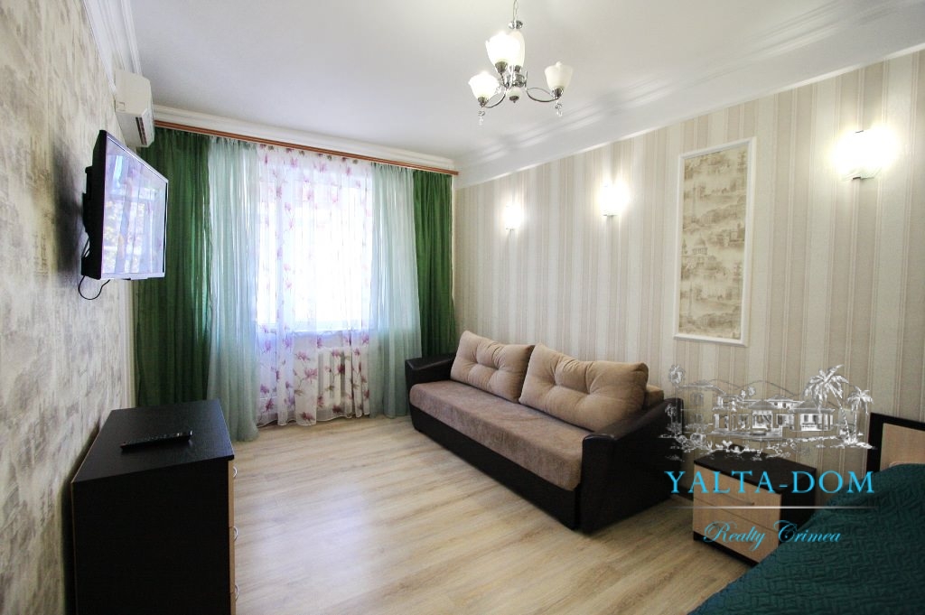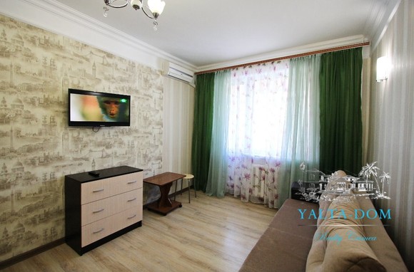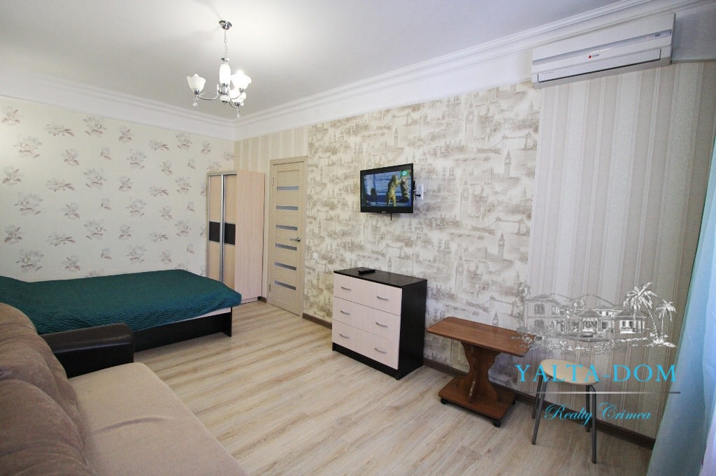 Квартира площадью 33 квадратных метра, расположена на третьем этаже. Новый ремонт и мебель. В наличии полный комплект бытовой техники: стиральная машина, кондиционер, бойлер, электрический чайник. Спальные места: двуспальная кровать, двуспальный диван. Балкон с видом на горы и дворик.