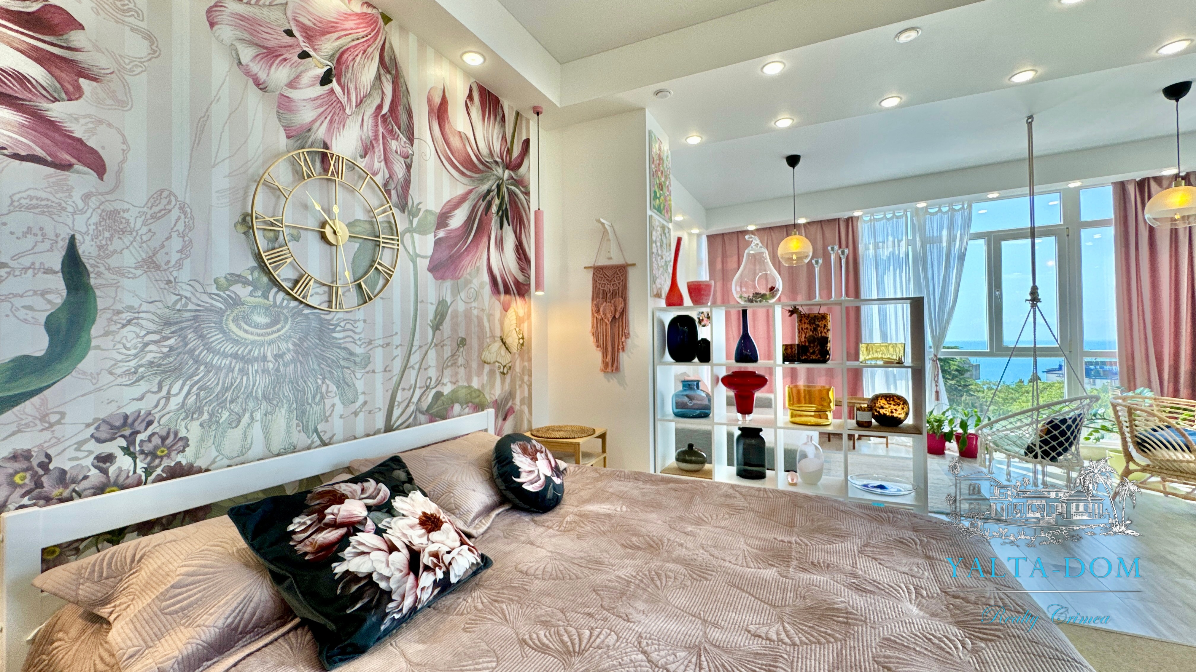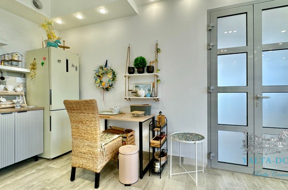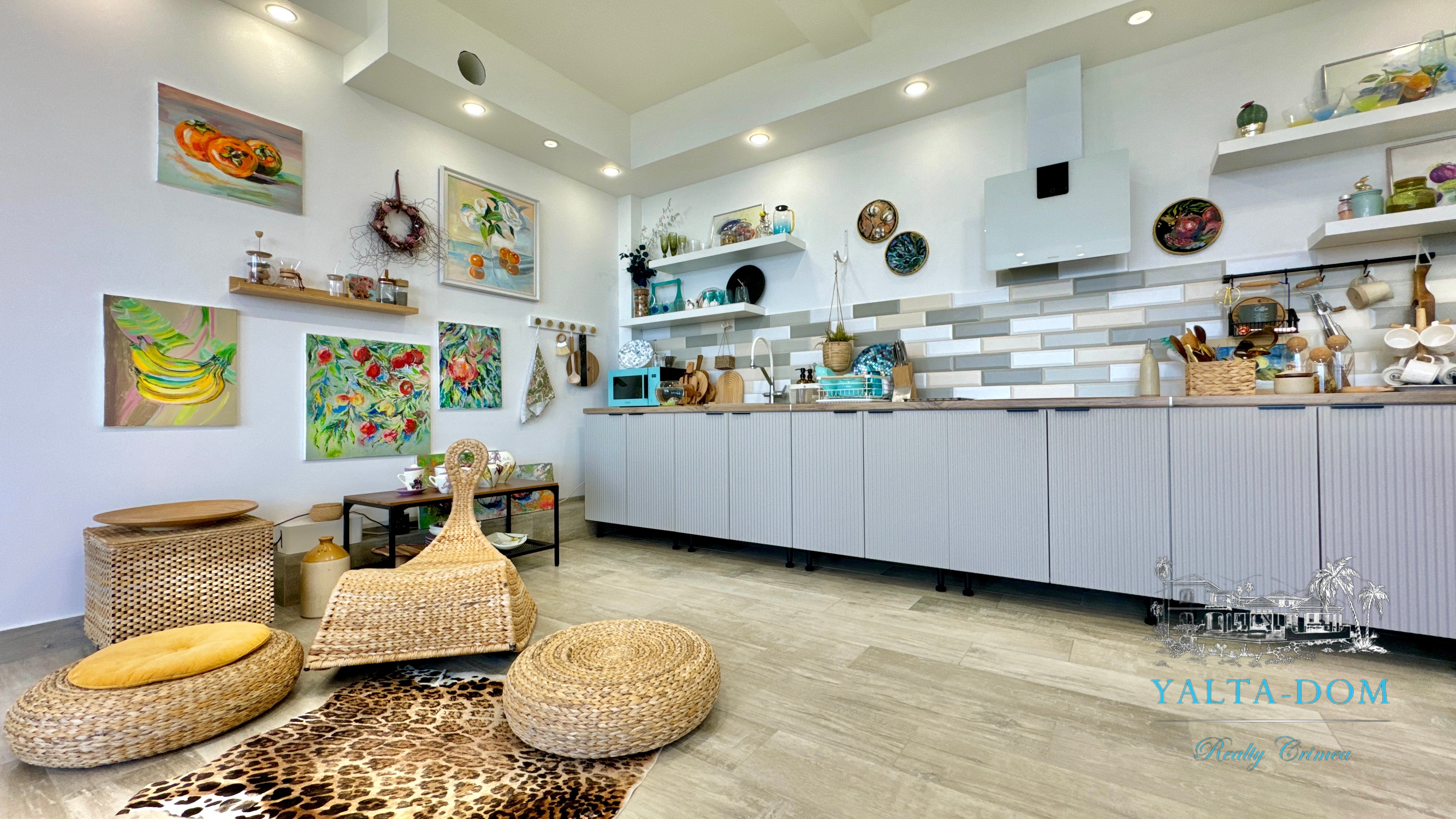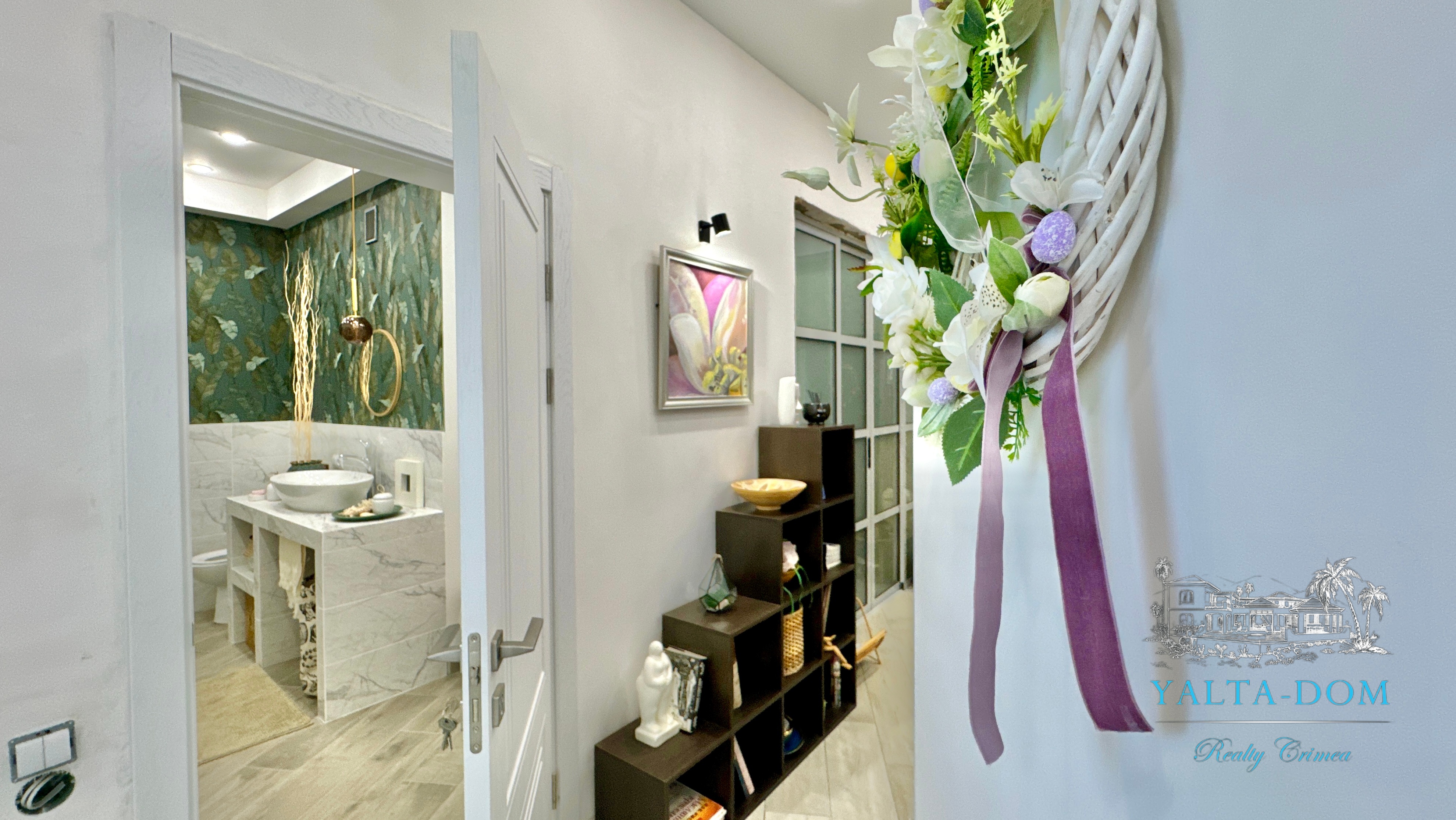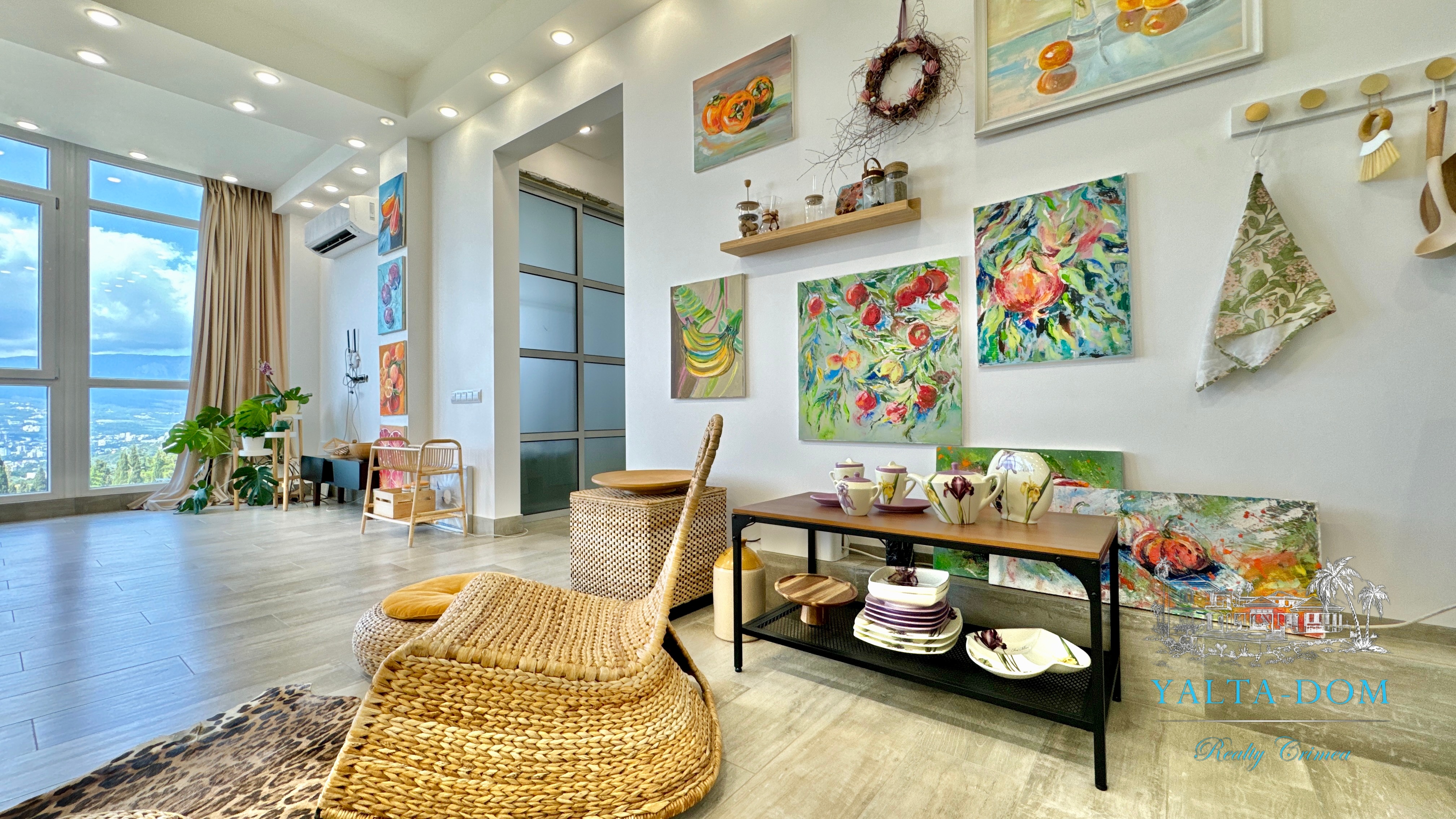 Квартира с прекрасным видом на море и горы, общей площадью 130 квадратных метров, расположена на третьем этаже нового жилищного комплекса в пригороде Ялты, пгт. Восход. Выполнен дизайнерский ремонт, панорамное остекление, есть вся необходимая бытовая техника, мебель и посуда, кондиционеры, индивидуальное отопление. Квартира состоит из зоны прихожей с большим гардеробным шкафом, кухни-гостиной, двух санузлов, большого пространства, разделенного на спальню и зону отдыха. На первом этаже дома расположен продуктовый магазин. Недалеко от дома несколько мелкогалечных пляжей: Отрадное, Никита, гостиницы Ялта-Интурист.