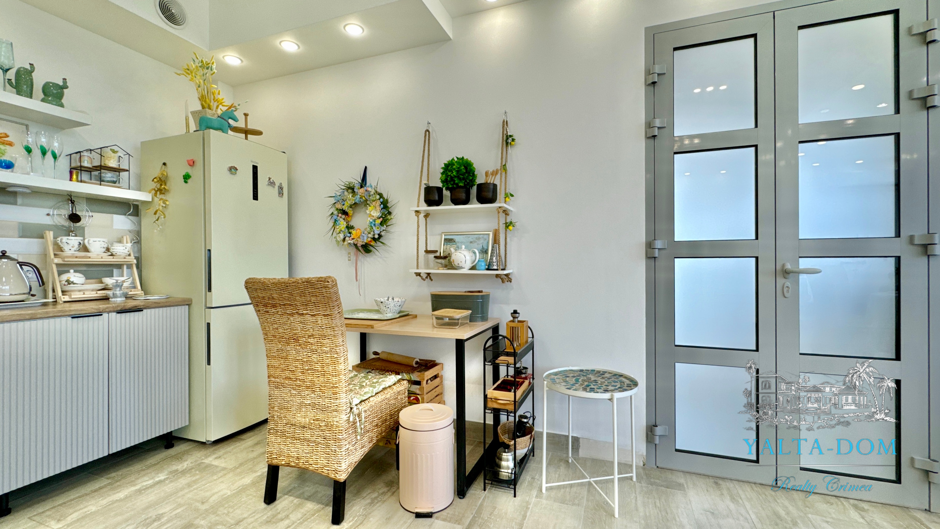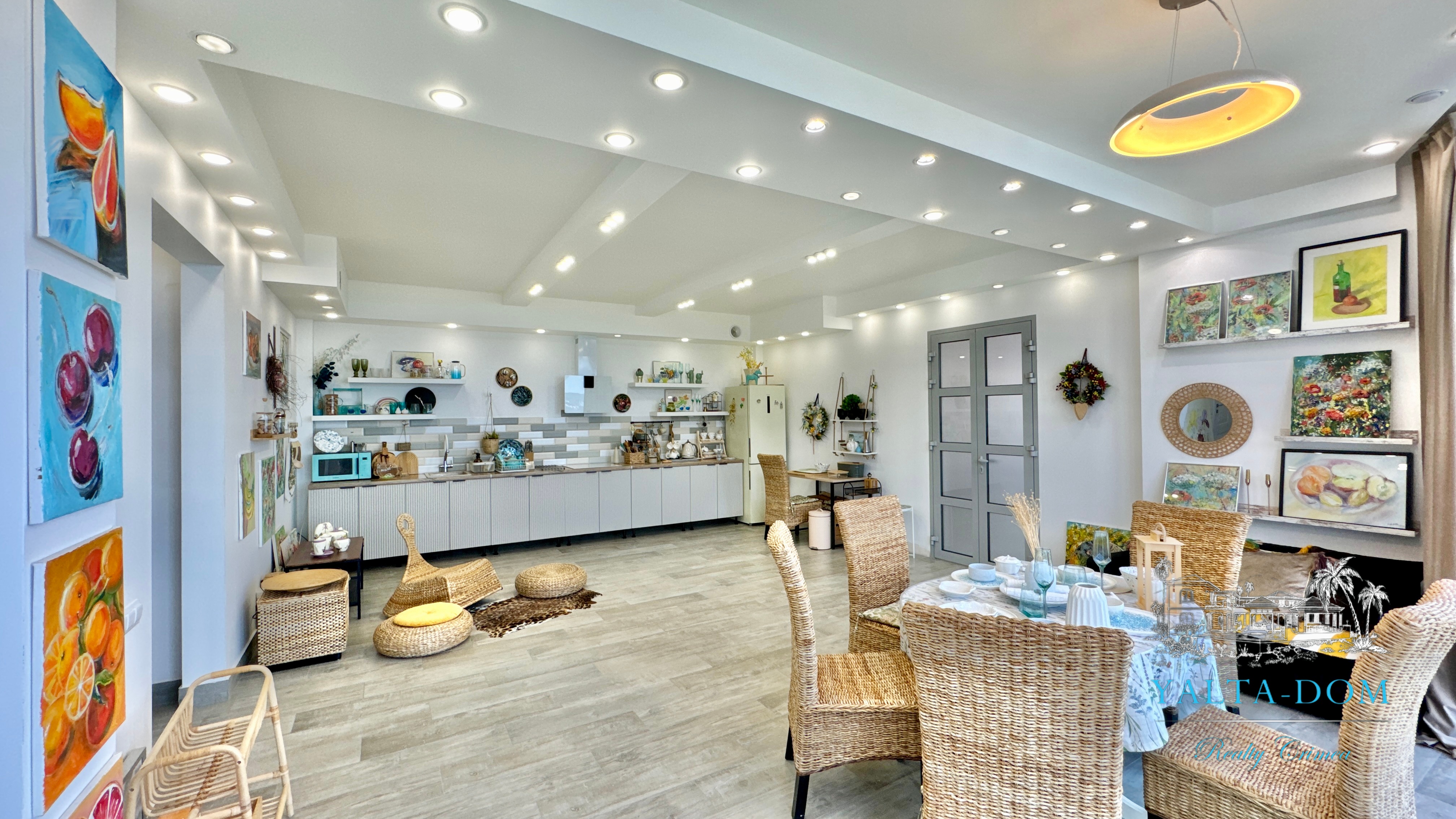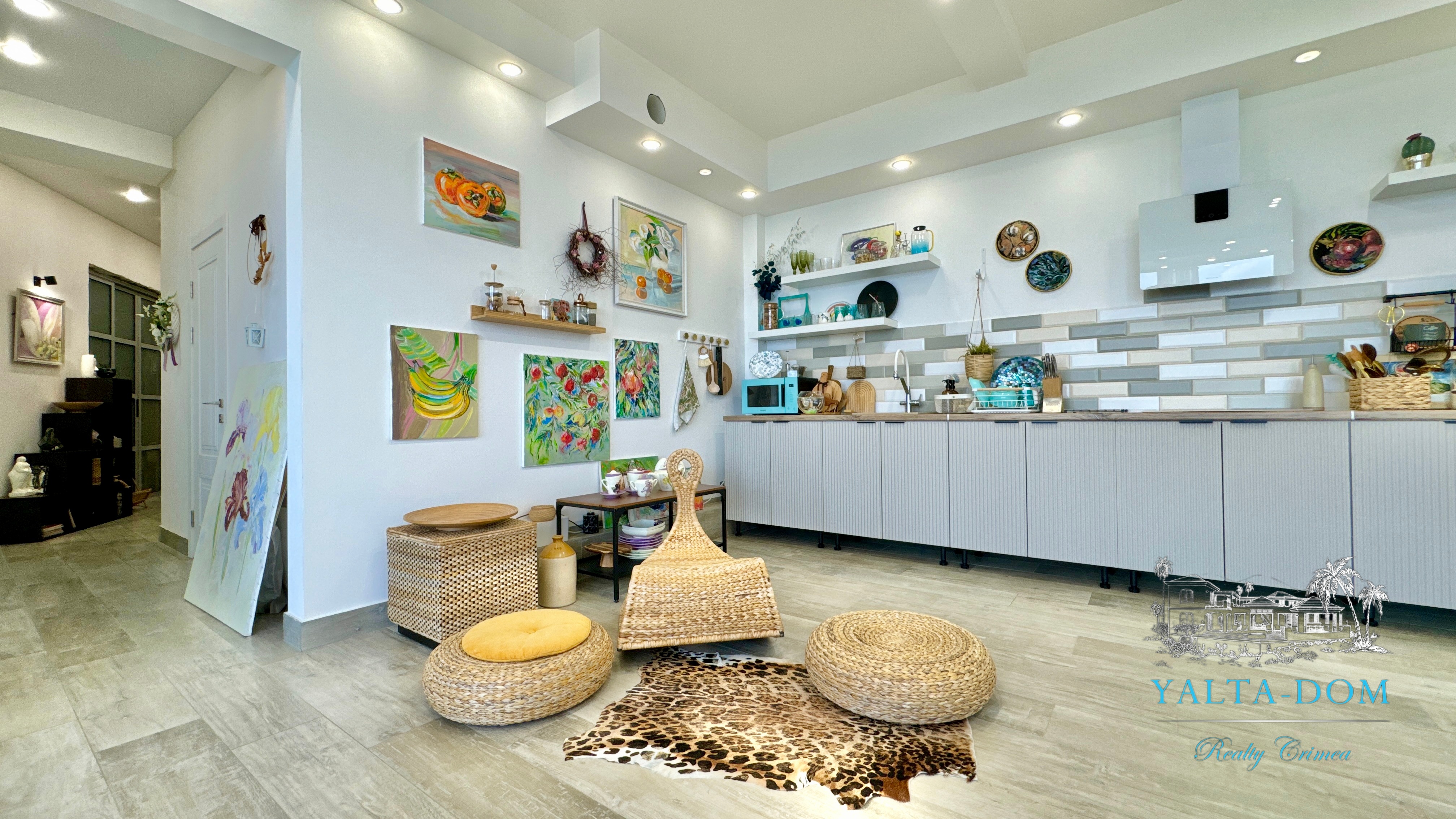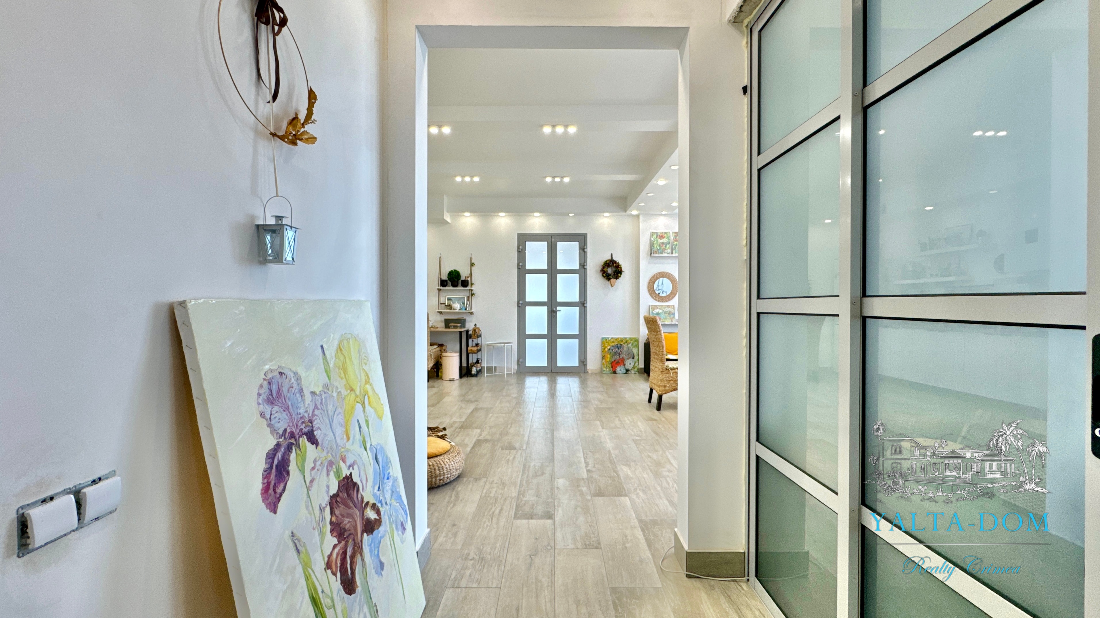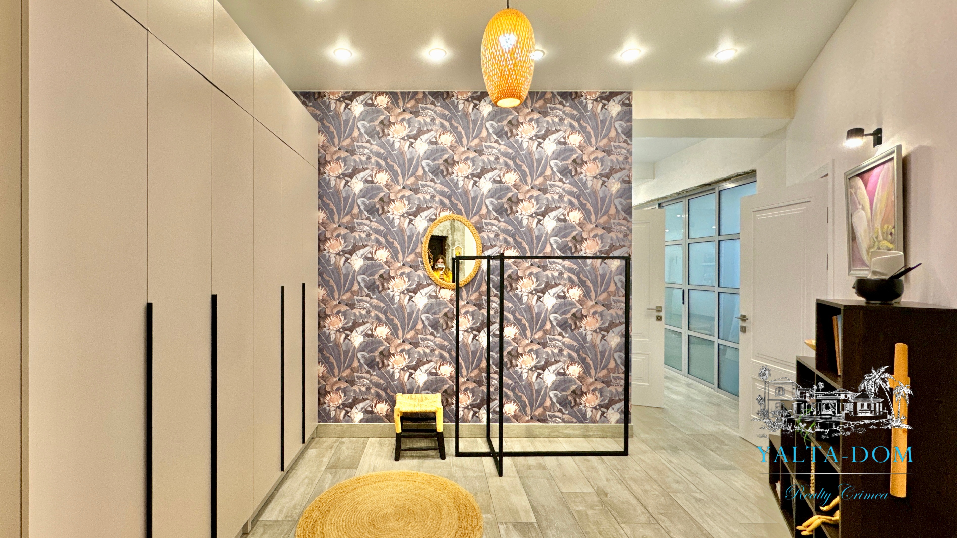 Квартира с прекрасным видом на море и горы, общей площадью 130 квадратных метров, расположена на третьем этаже нового жилищного комплекса в пригороде Ялты, пгт. Восход. Выполнен дизайнерский ремонт, панорамное остекление, есть вся необходимая бытовая техника, мебель и посуда, кондиционеры, индивидуальное отопление. Квартира состоит из зоны прихожей с большим гардеробным шкафом, кухни-гостиной, двух санузлов, большого пространства, разделенного на спальню и зону отдыха. На первом этаже дома расположен продуктовый магазин. Недалеко от дома несколько мелкогалечных пляжей: Отрадное, Никита, гостиницы Ялта-Интурист.