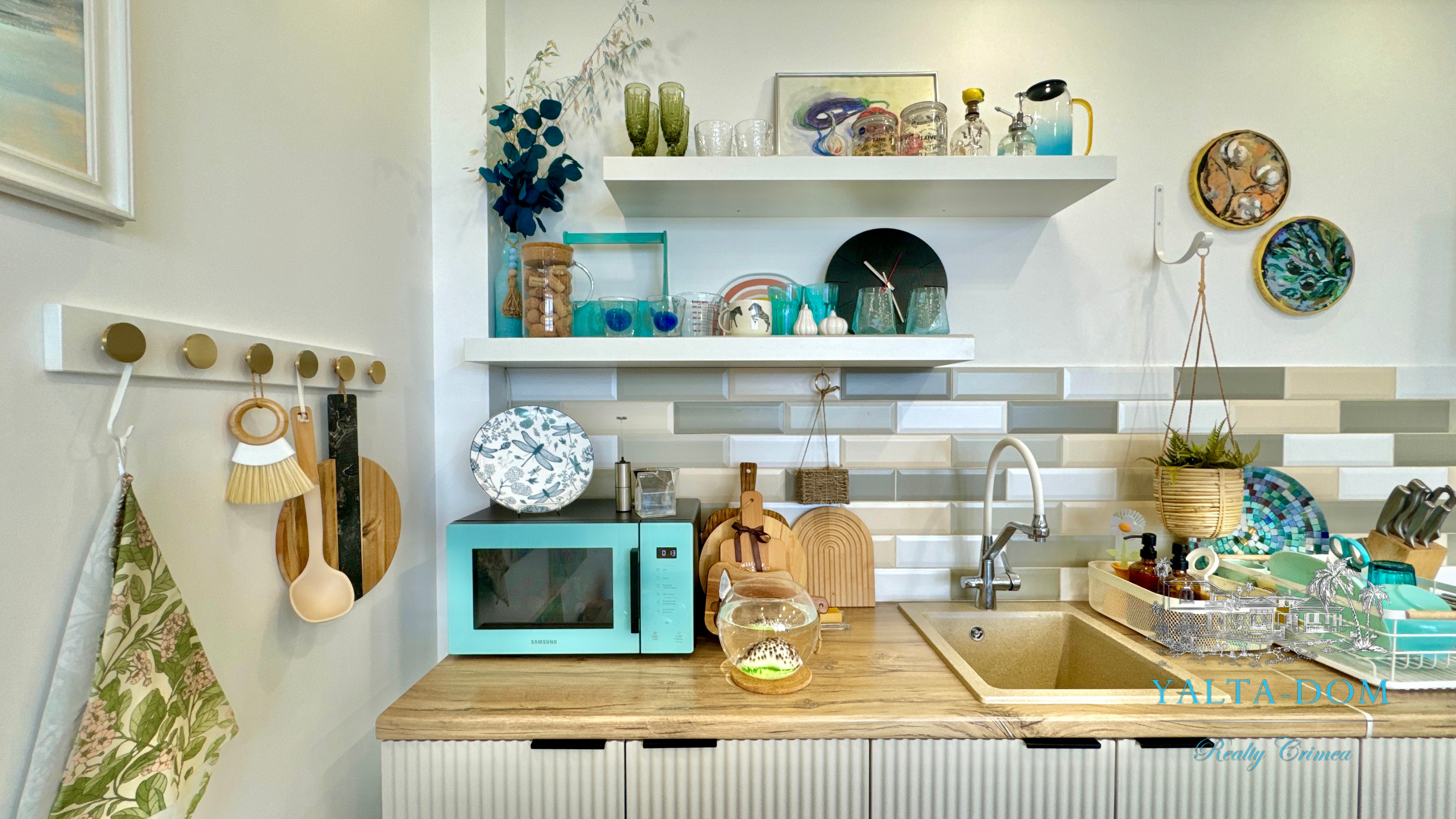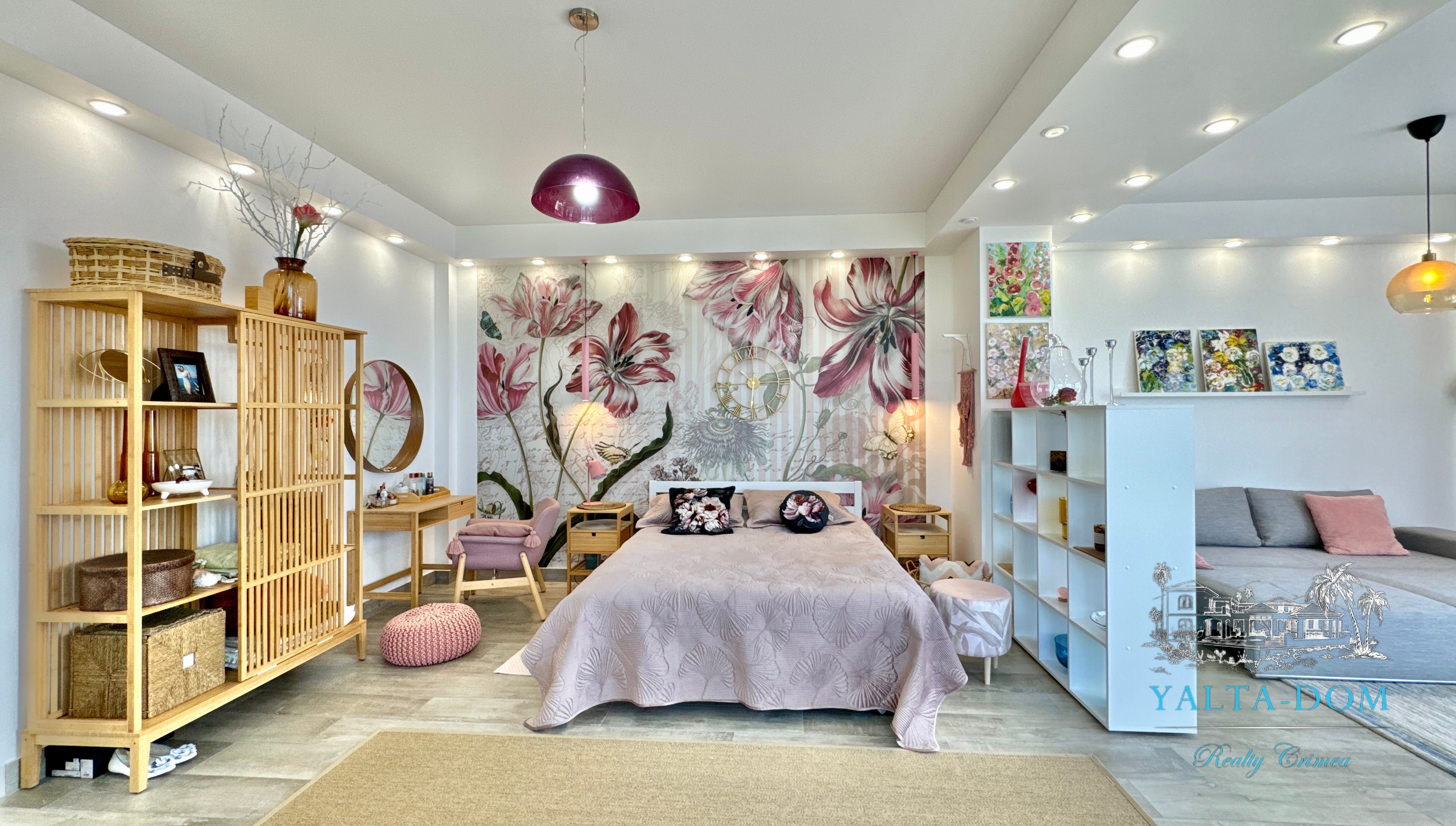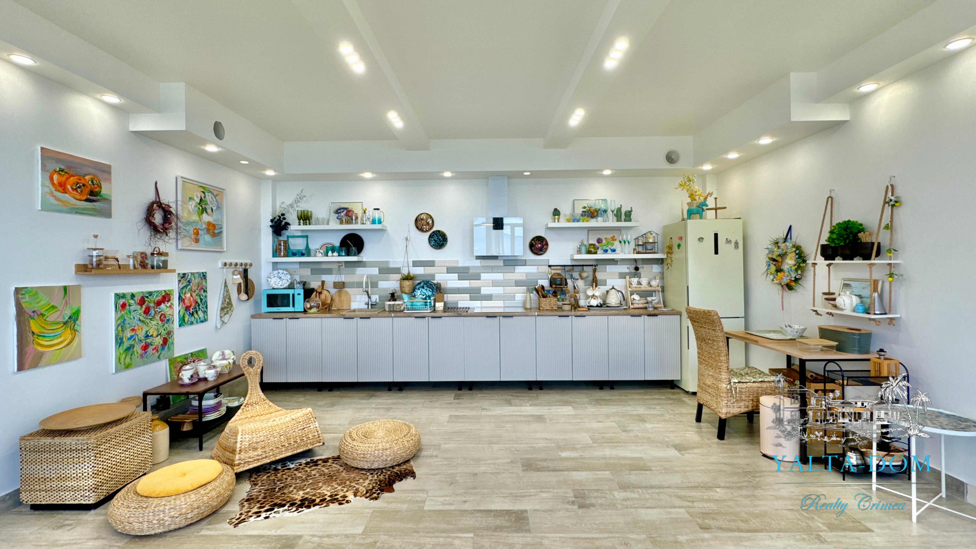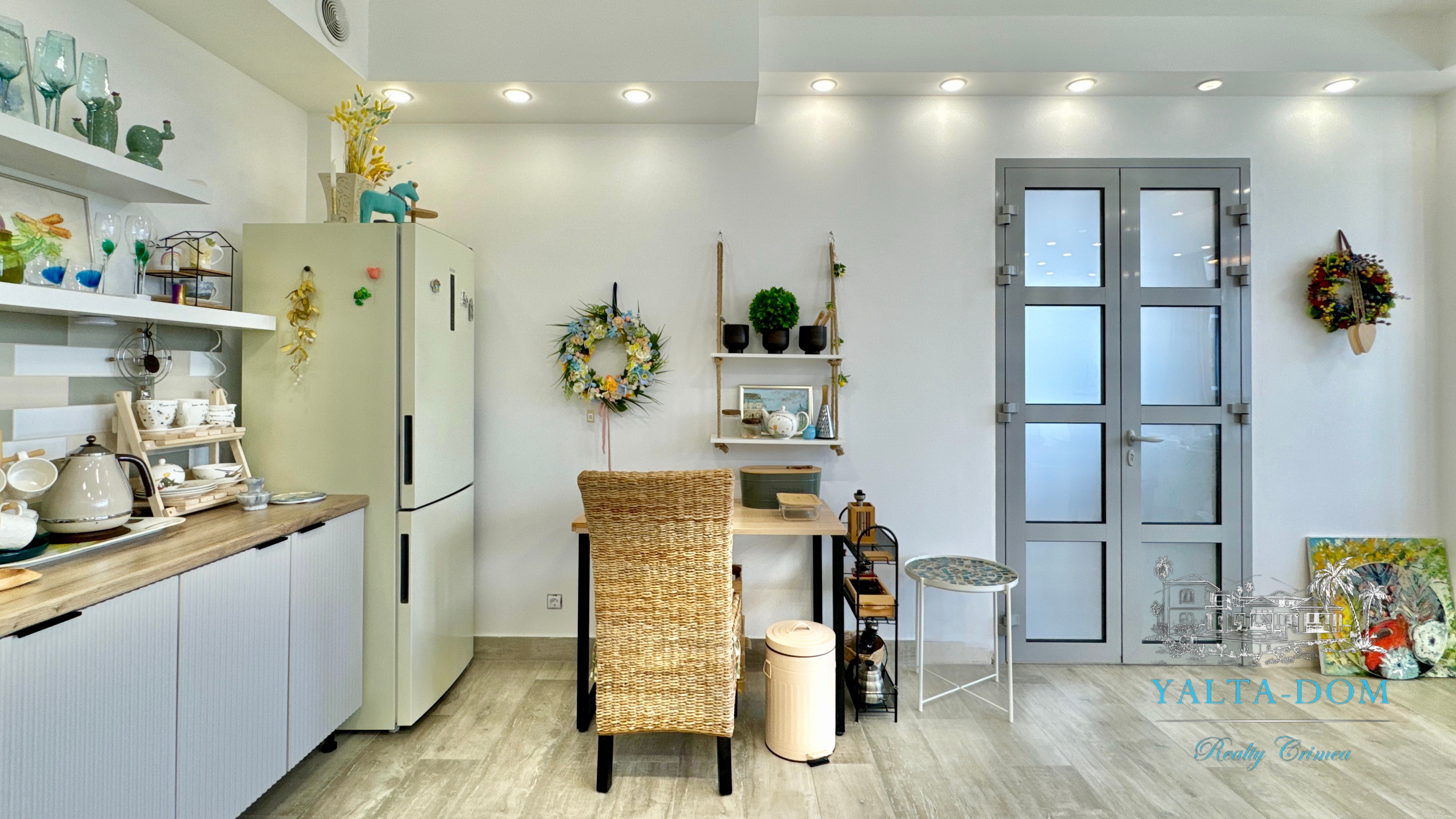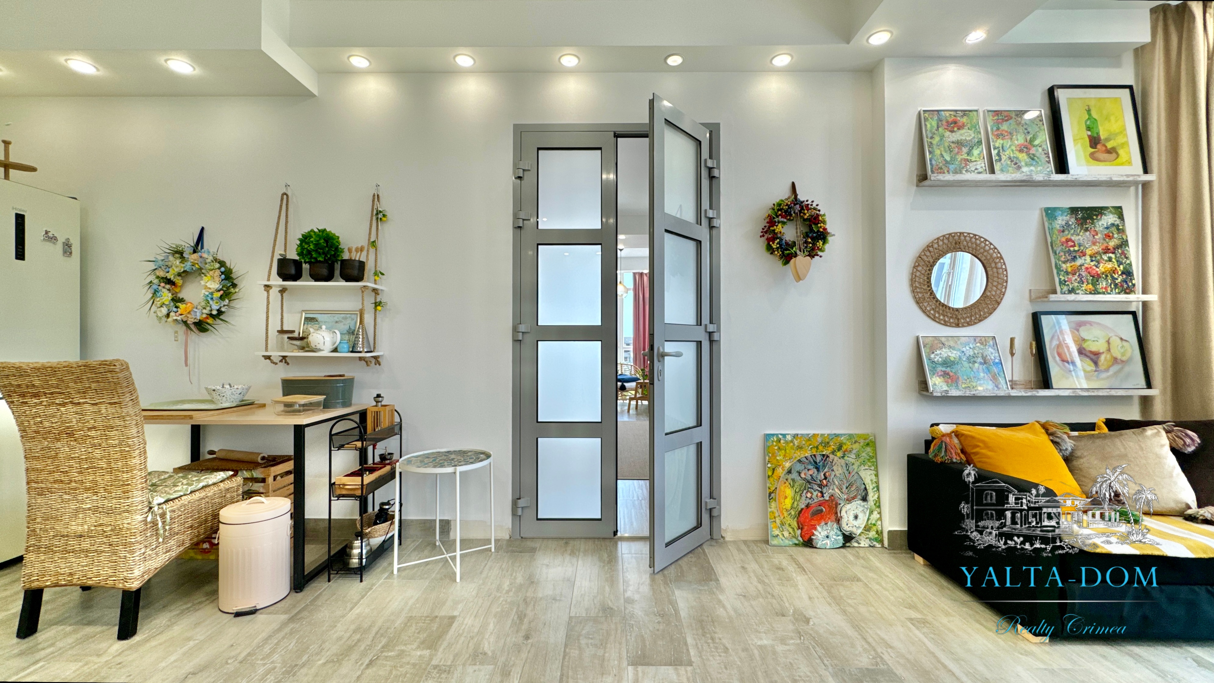 Квартира с прекрасным видом на море и горы, общей площадью 130 квадратных метров, расположена на третьем этаже нового жилищного комплекса в пригороде Ялты, пгт. Восход. Выполнен дизайнерский ремонт, панорамное остекление, есть вся необходимая бытовая техника, мебель и посуда, кондиционеры, индивидуальное отопление. Квартира состоит из зоны прихожей с большим гардеробным шкафом, кухни-гостиной, двух санузлов, большого пространства, разделенного на спальню и зону отдыха. На первом этаже дома расположен продуктовый магазин. Недалеко от дома несколько мелкогалечных пляжей: Отрадное, Никита, гостиницы Ялта-Интурист.