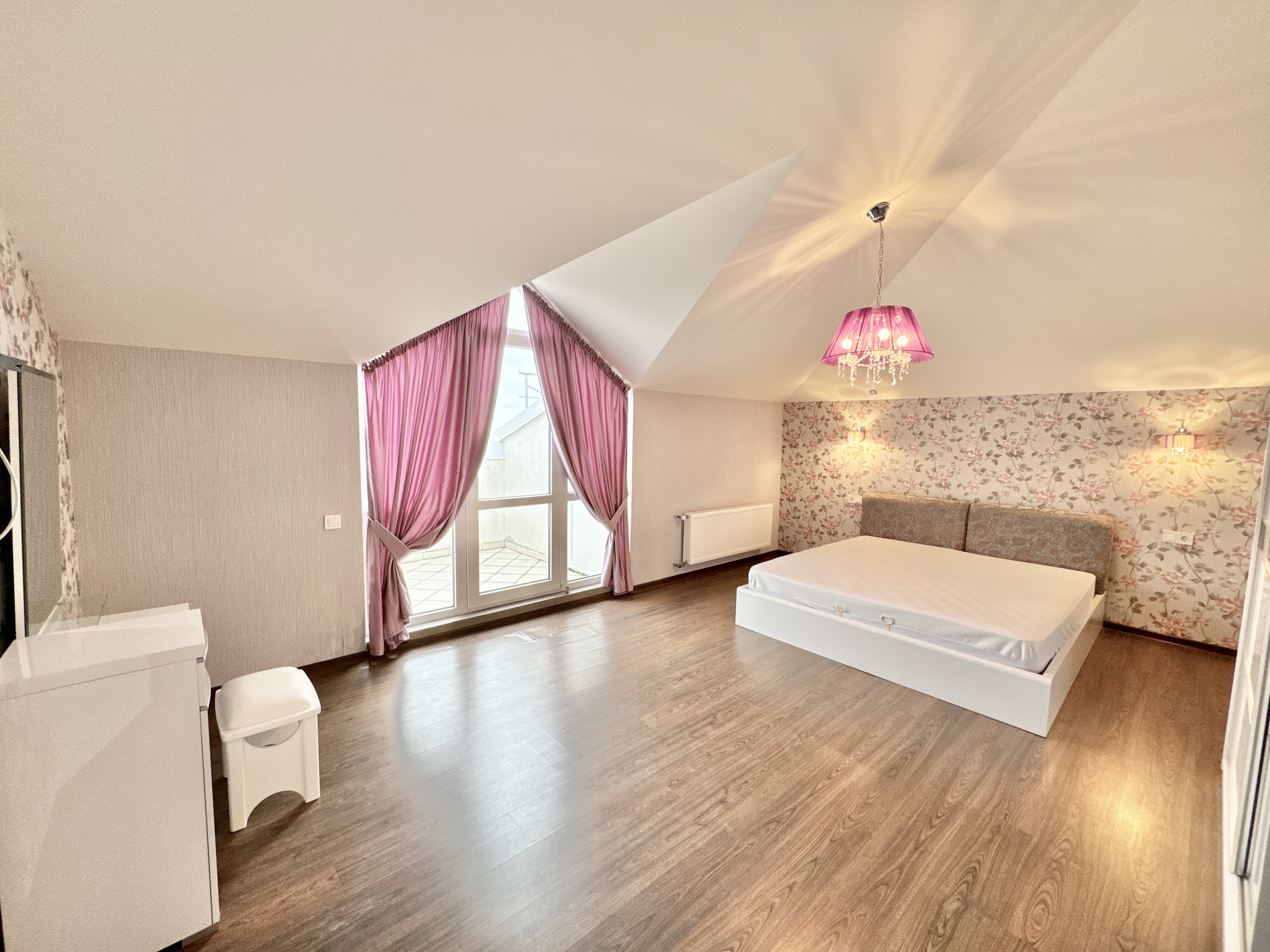 Первый уровень: холл, кухня с выходом на балкон с видом на море. Гардеробная, санузел с душевой совмещены, гостинная с выходом на огромный балкон с видом на море и горы.
