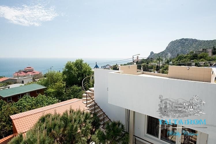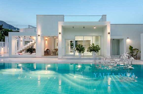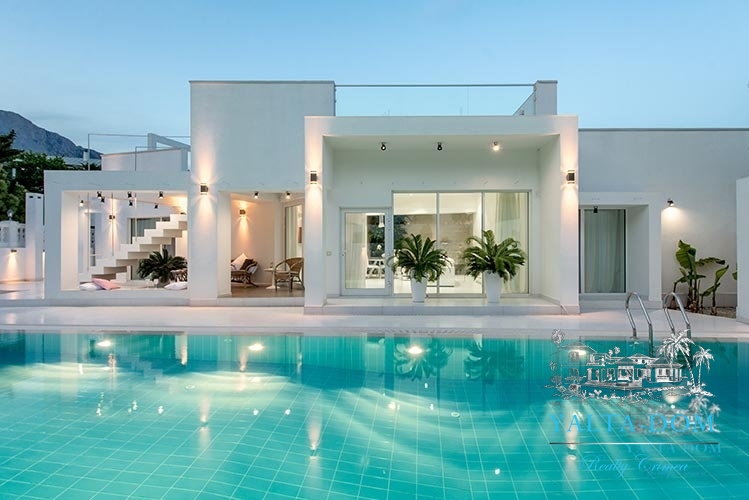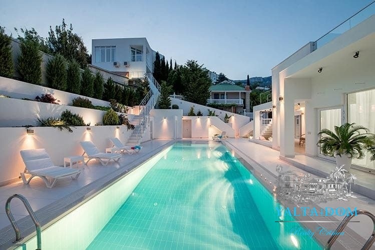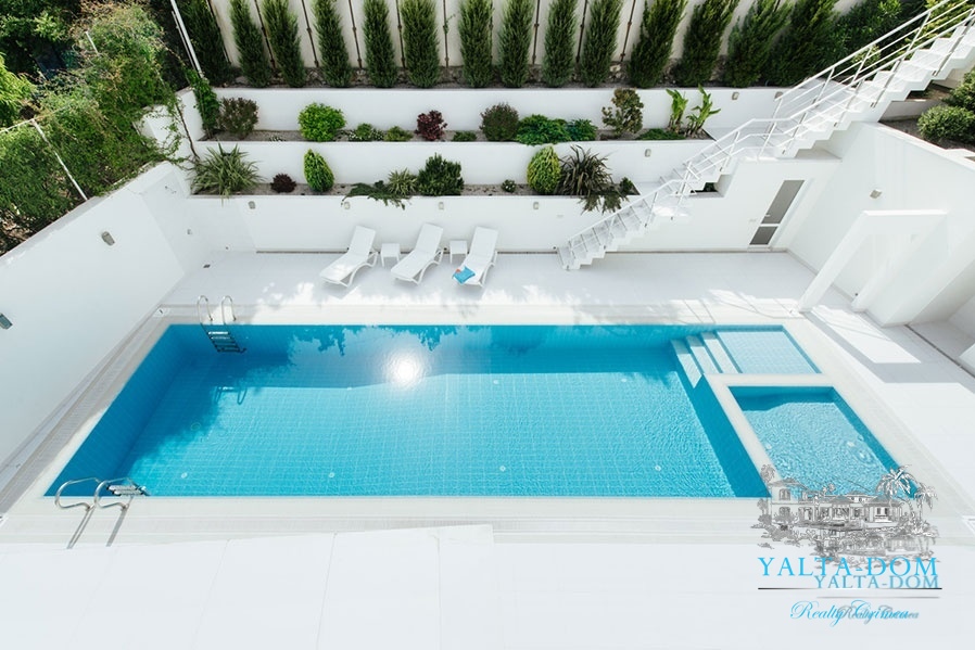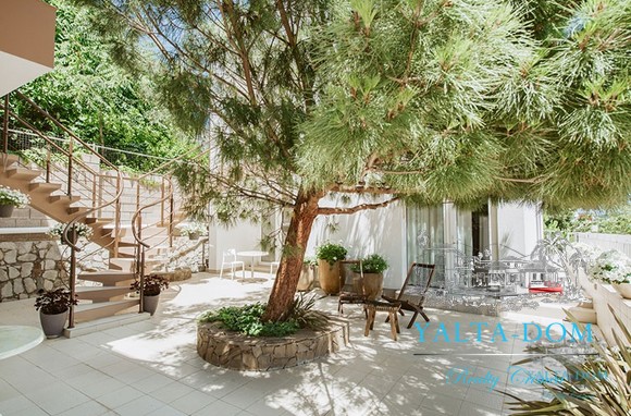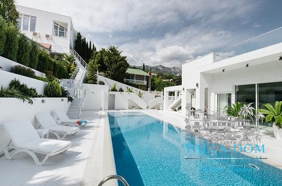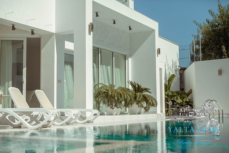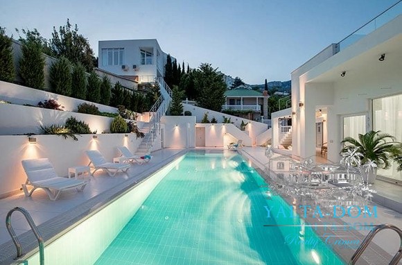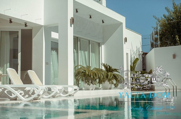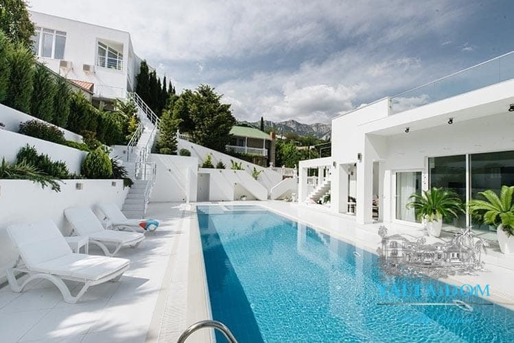Наши гости, без сомнения, смогут оценить великолепие ослепительно белой территории и правильных архитектурных форм в сочетании с естественной, благородной цветовой палитрой яркой крымской природы и насладиться панорамными видами с обустроенной на крыше смотровой площадки; для комфорта гостей — лазурный бассейн и терраса для принятия солнечных ванн, строгая симметрия, респектабельный минимализм в убранстве комнат.