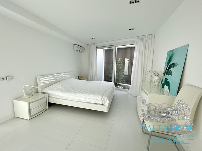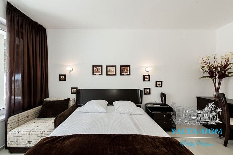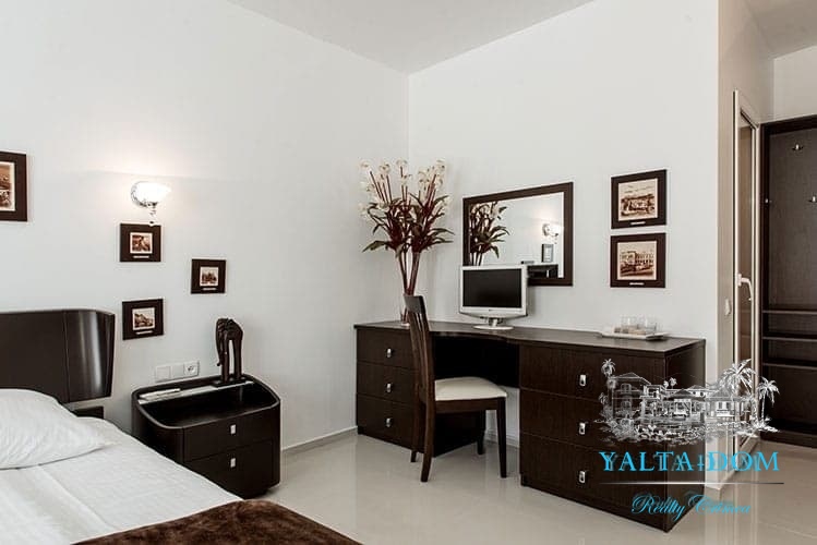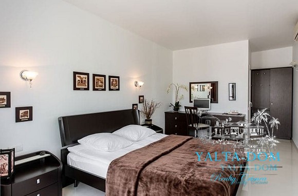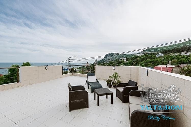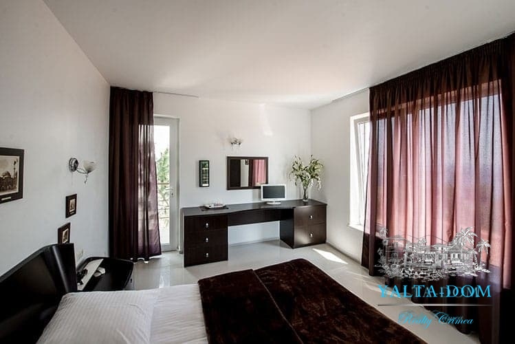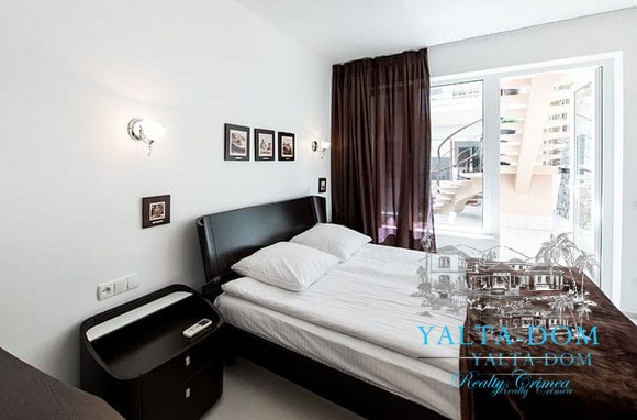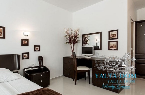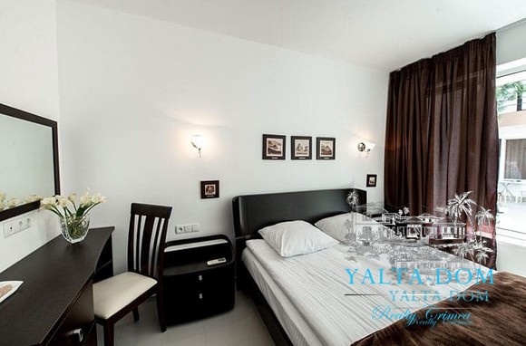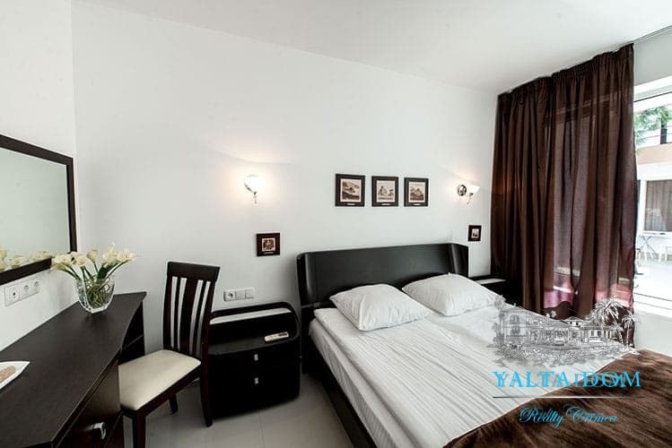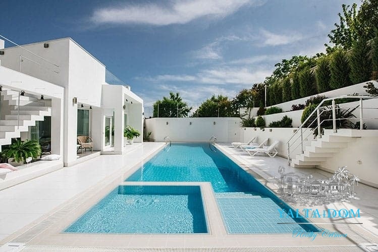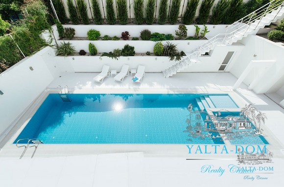 Наши гости, без сомнения, смогут оценить великолепие ослепительно белой территории и правильных архитектурных форм в сочетании с естественной, благородной цветовой палитрой яркой крымской природы и насладиться панорамными видами с обустроенной на крыше смотровой площадки; для комфорта гостей — лазурный бассейн и терраса для принятия солнечных ванн, строгая симметрия, респектабельный минимализм в убранстве комнат.