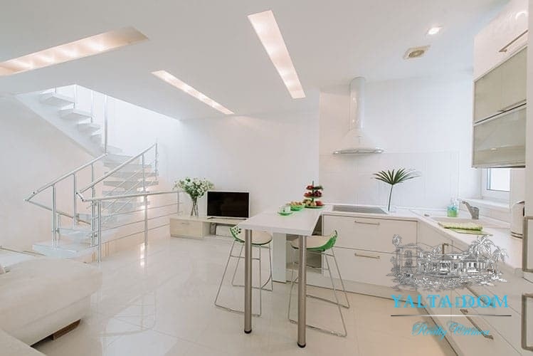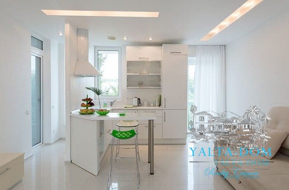 Кухня оборудована кофемашиной и всем необходимым инвентарем, за исключением, - плиты и духовки (их нет).