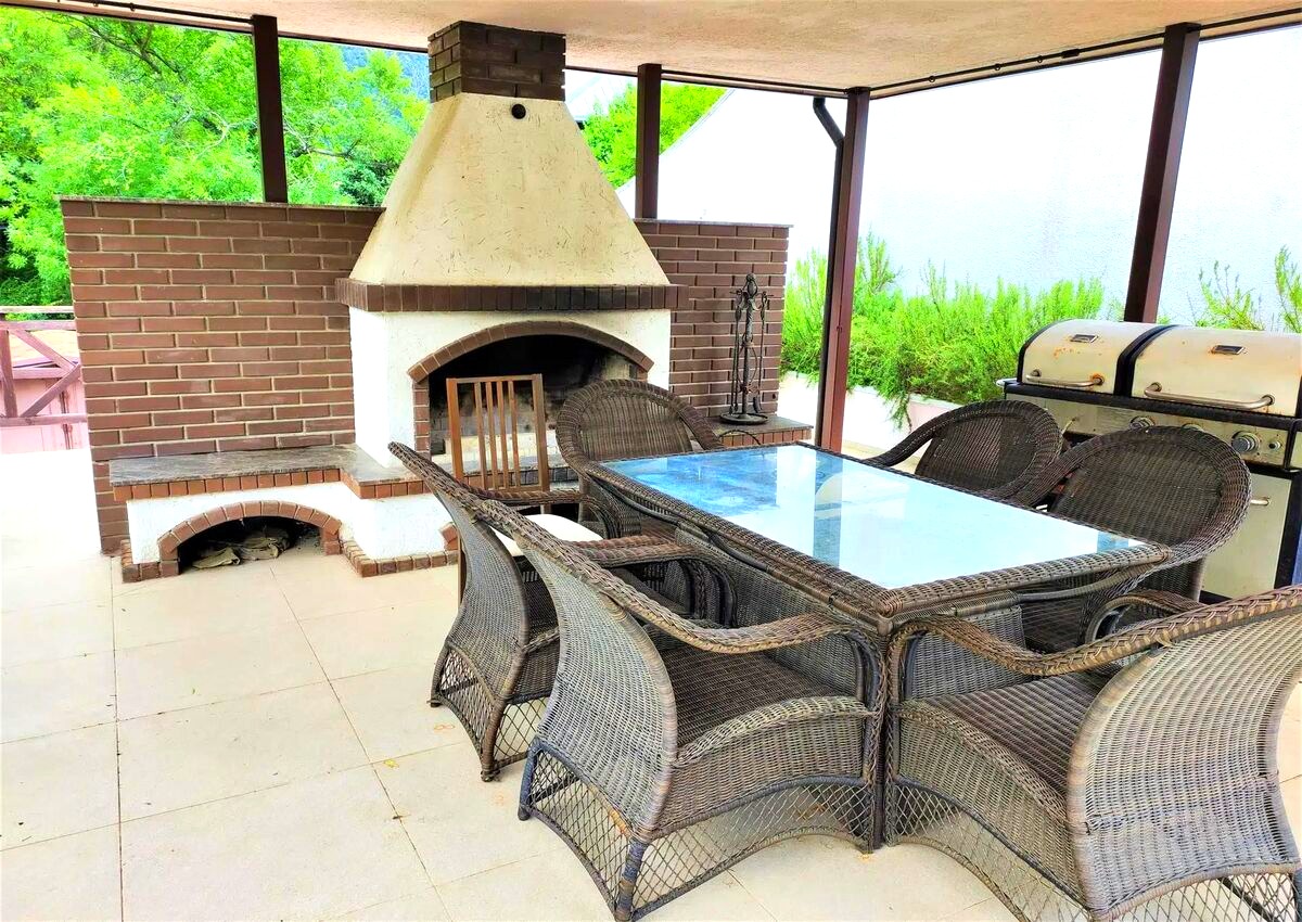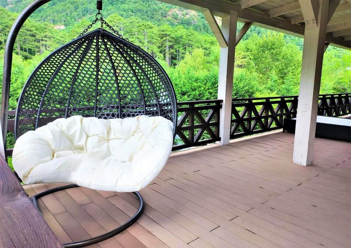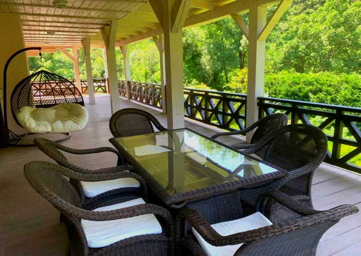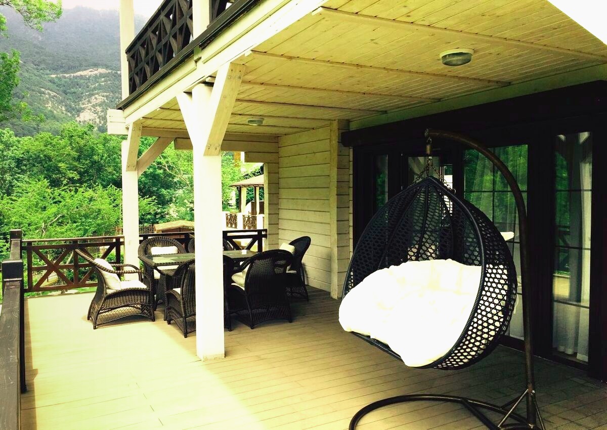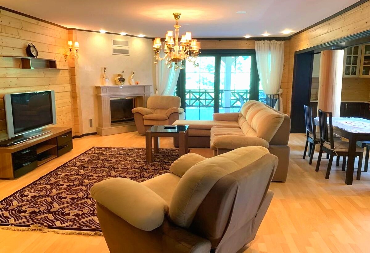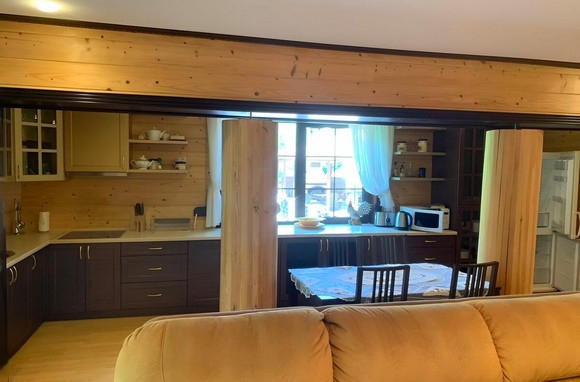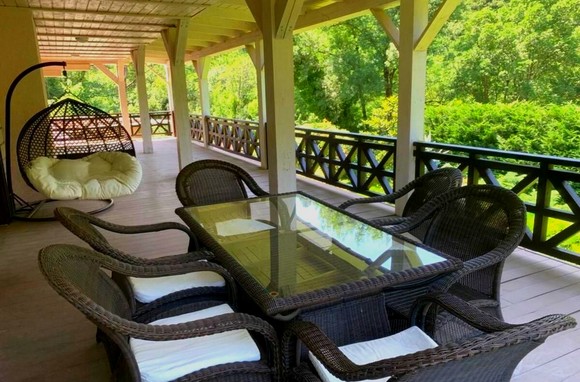 Усадьба подходит для комфортного проживания круглый год, и имеет в основном доме: две кухни-гостиные, восемь спален, шесть с/у, открытые террасы с летней мебелью для отдыха на втором и третьем этажах.