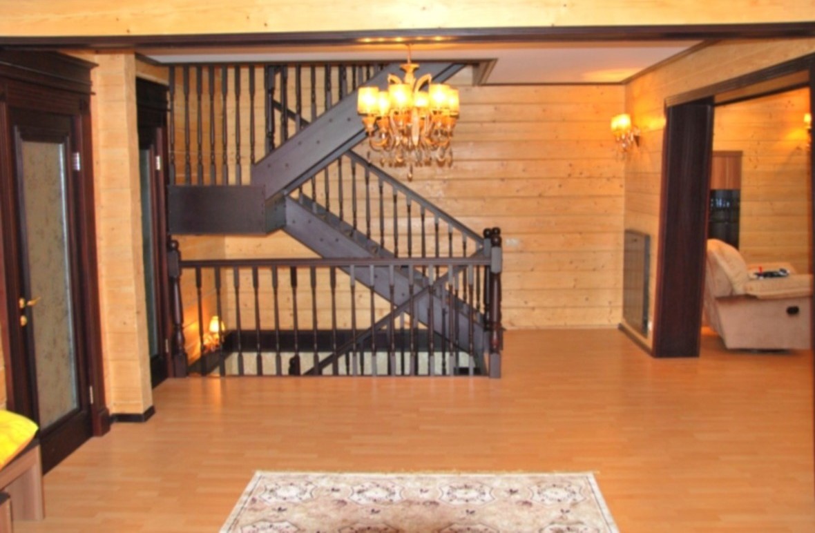 Второй и третий этажи дома – выполнены в технике канадского сруба, обеспечивающего максимально комфортный и экологически безупречный микроклимат в доме: зимой – тепло, летом – прохладно. Канадские срубы – уникальны по текстуре, размеру бревна, естественному рисунку древесины и архитектурной форме, износоустойчивы и не требуют дополнительной отделки.