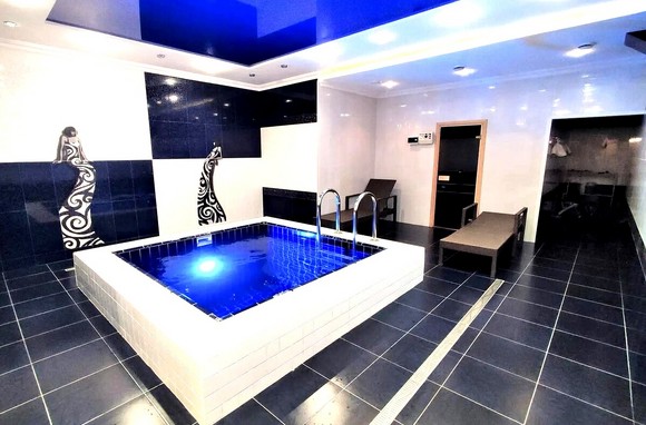 Второй и третий этажи жилого дома, состоят из двух зеркальных частей, каждая из которых имеет свой вход с открытой террасы и лестницу, ведущую на первый этаж, в спа-центр. Каждая часть дома (два этажа) может использоваться автономно и имеет: кухню-гостинную, четыре спальни и три санузла.