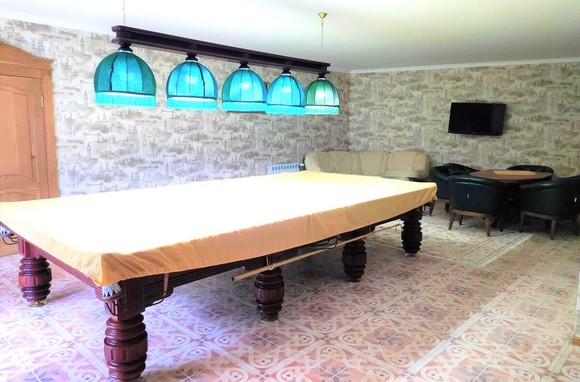 На закрытой территории расположены: гараж на две машины, парковка; гостевой дом с кухней, бильярдной, винным погребом, зоной барбекю с крытой беседкой с садовой мебелью и панорамными видами на крымскую природу. Дом оборудован всем необходимым для комфортного проживания: мебелью, техникой. Выполнен ландшафтный дизайн территории усадьбы. Общая площадь строений 1250м2.