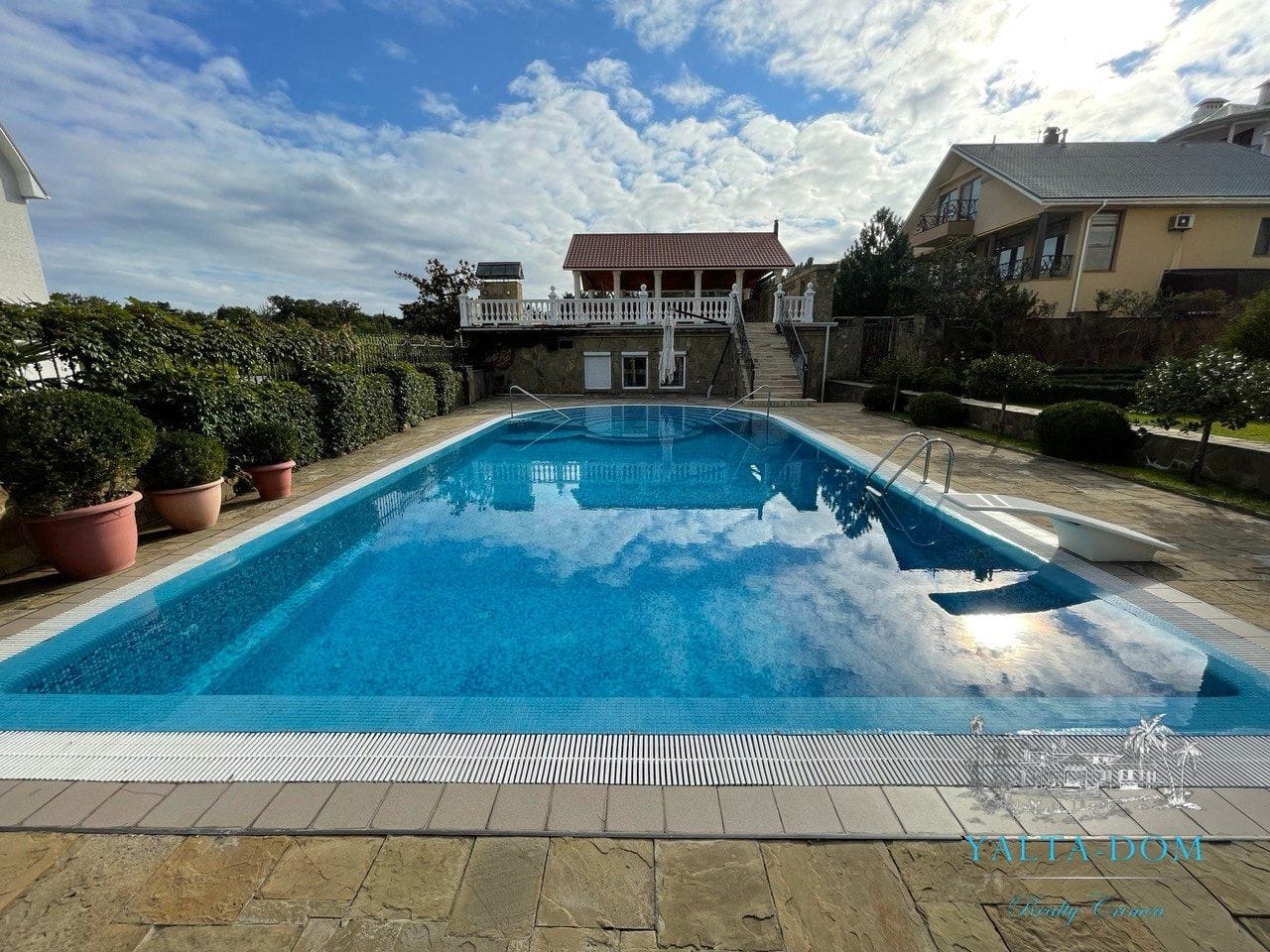 Также на участке расположен бассейн общей длиной 14 метров, глубина от 60 см до 4 метров.