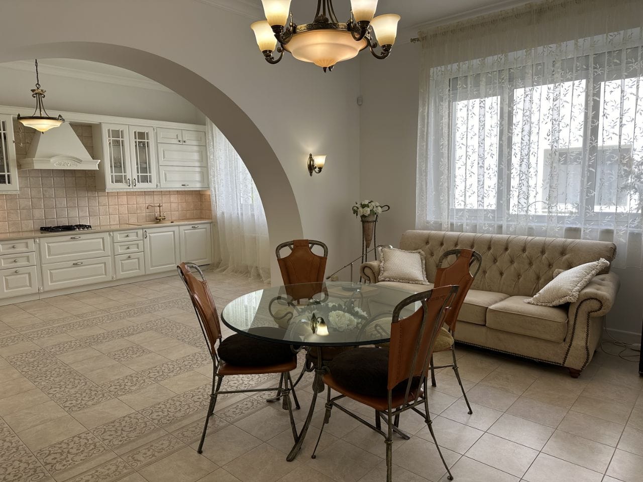 Второй этаж: гостиная, кухня совмещенная со столовой и ТВ зоной, терраса.
