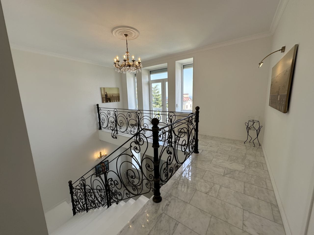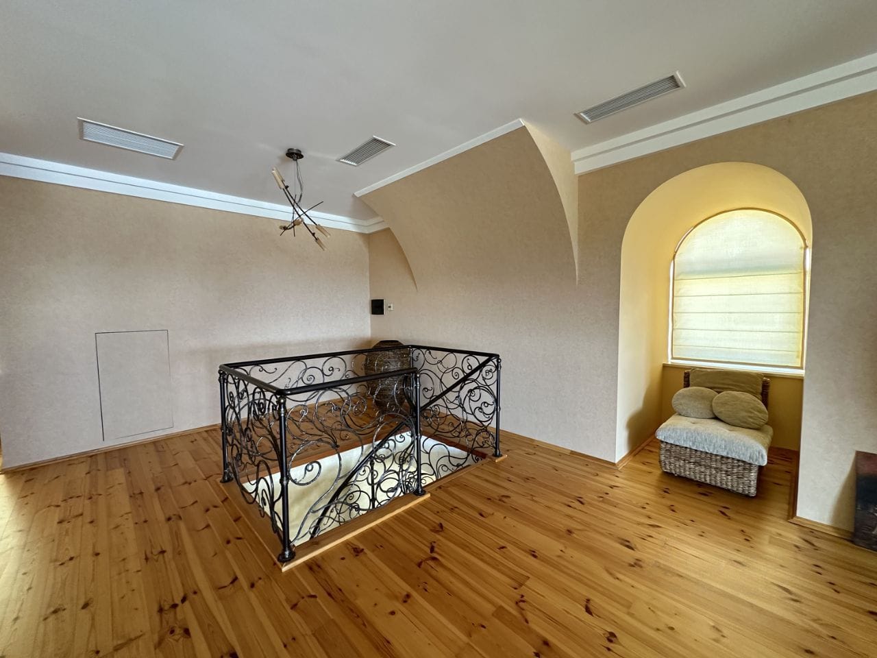 Третий этаж: две мастер спальни, один сан узел, гардеробная, балкон.